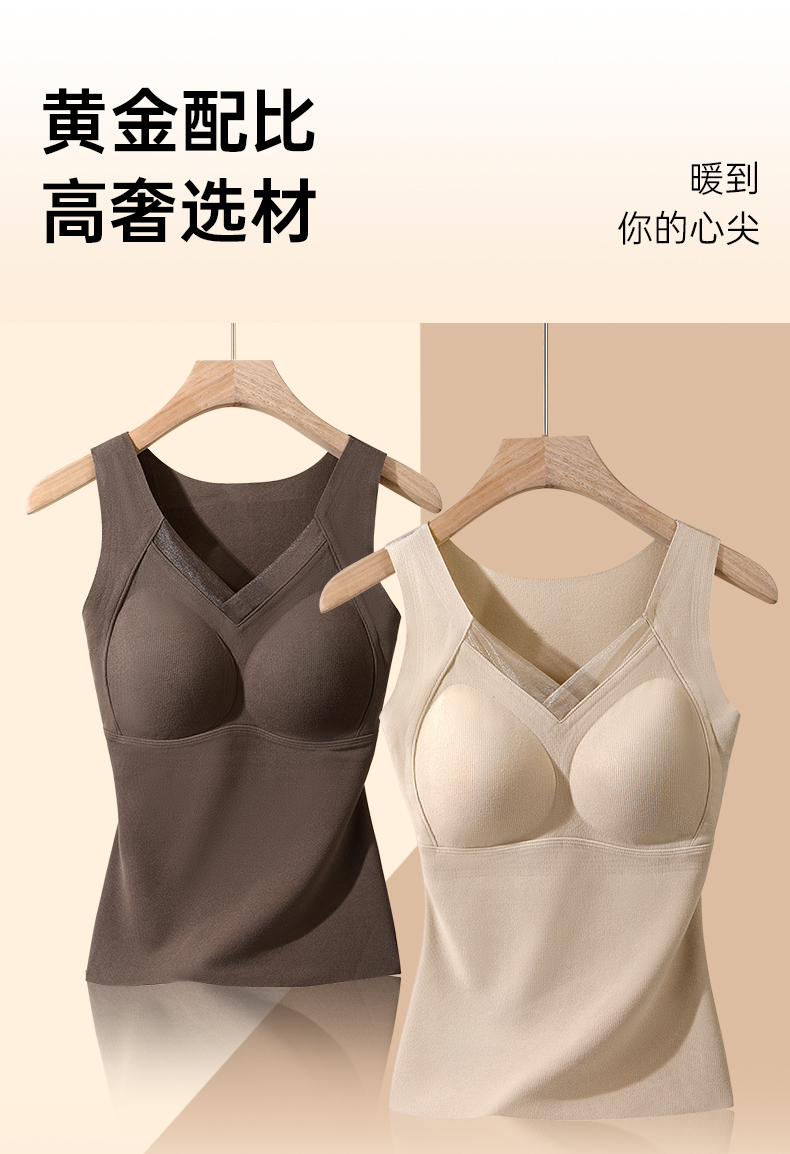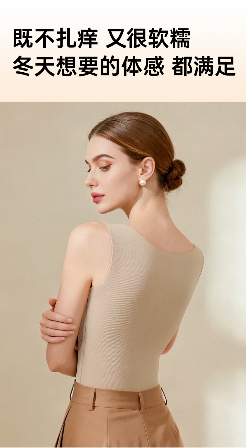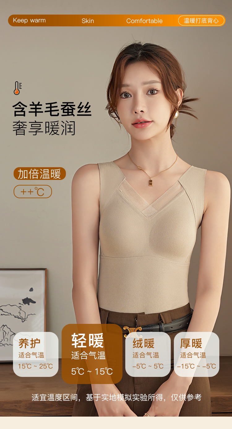 C1F1-【79元2件】【🔥含绵羊毛桑蚕丝】润微带胸垫保暖背心女秋冬打底高弹力修身舒适百搭可外穿背心内衣 雾纱思语