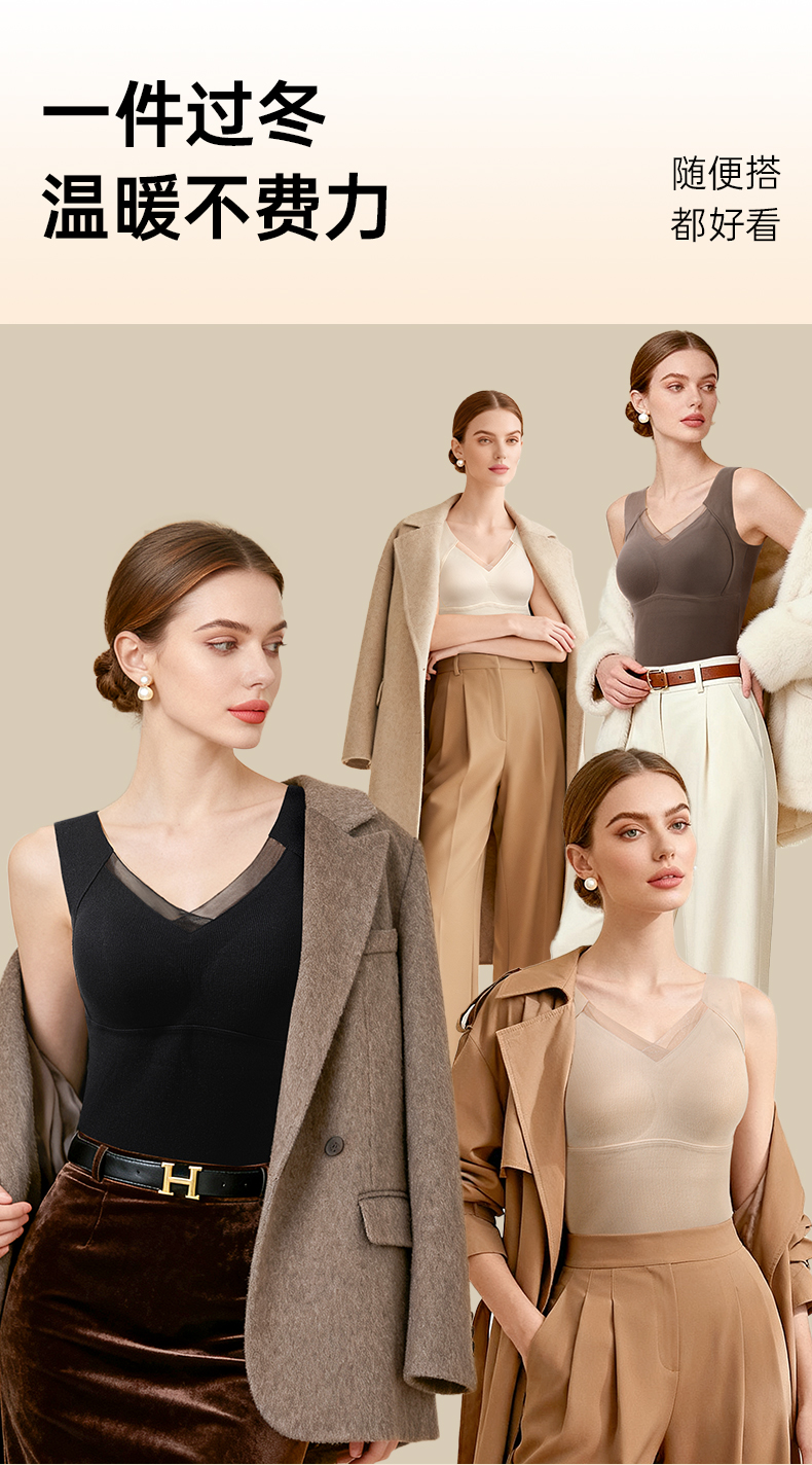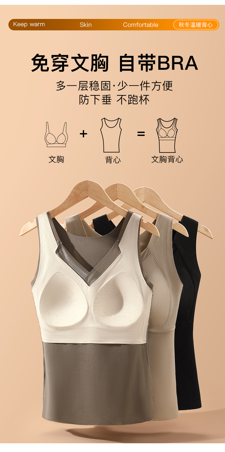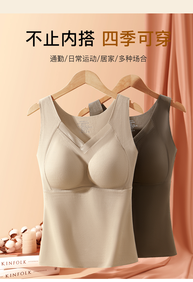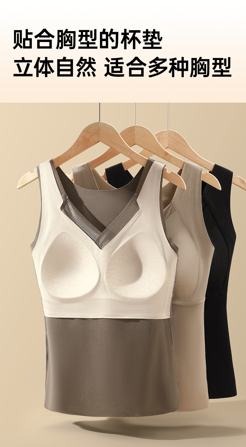 C1F1-【79元2件】【🔥含绵羊毛桑蚕丝】润微带胸垫保暖背心女秋冬打底高弹力修身舒适百搭可外穿背心内衣 雾纱思语