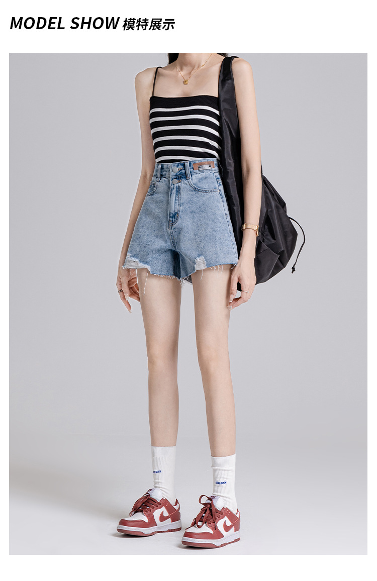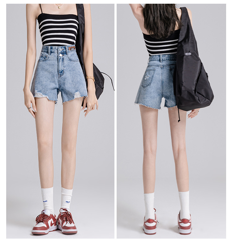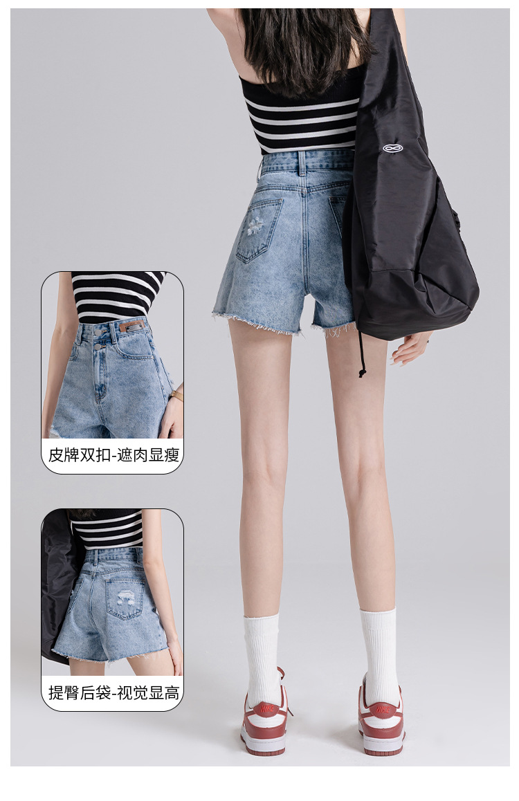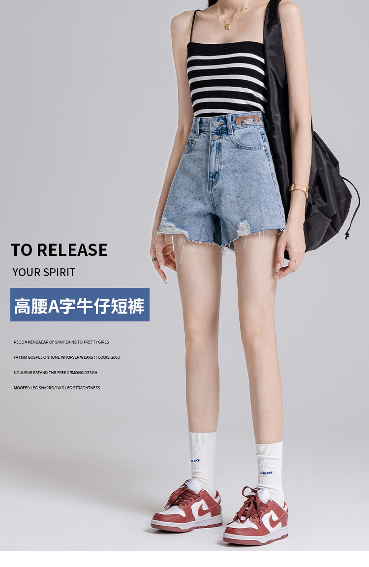 夏季穿搭【显瘦显高!秒变大长腿!】夏季薄款新款宽松阔腿高腰显瘦,时尚a字辣妹超短热裤,百搭不挑五分牛仔裤女时尚休闲热裤牛仔短裤女
