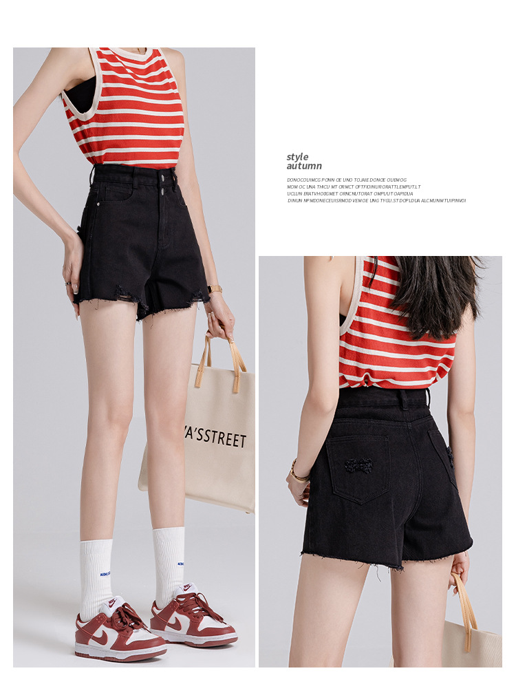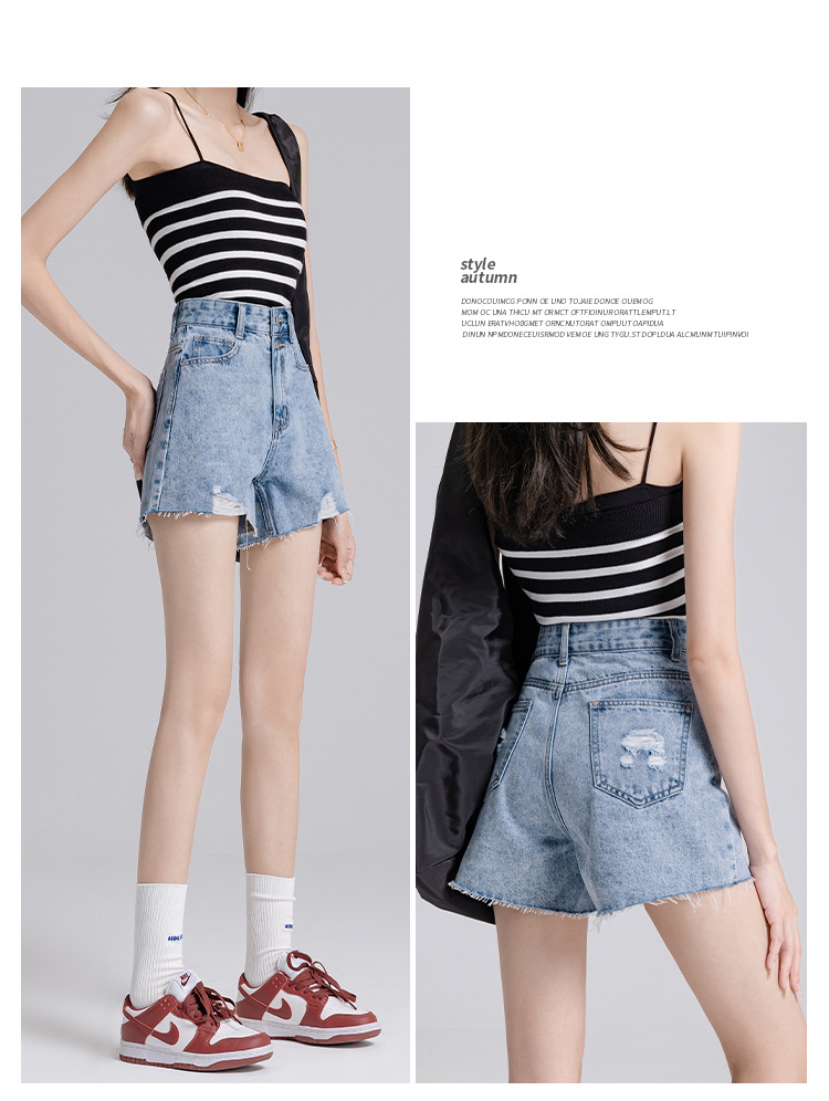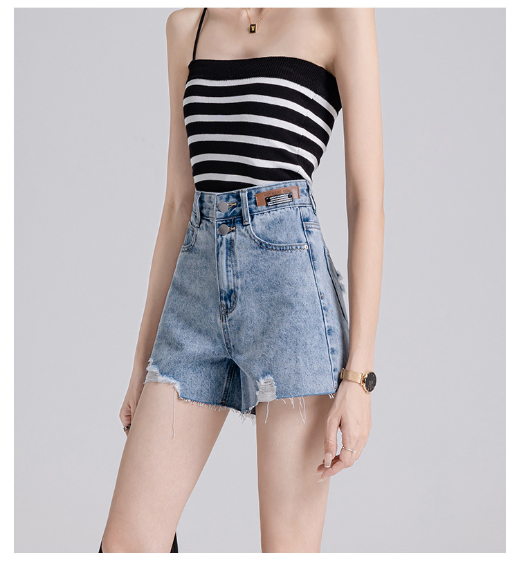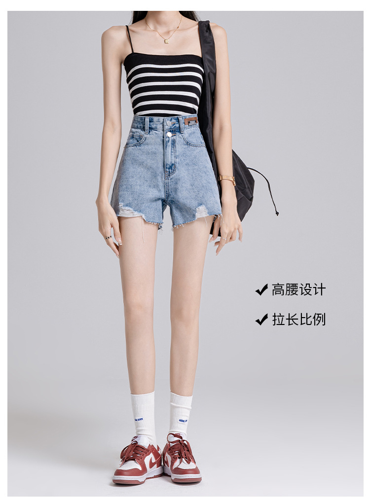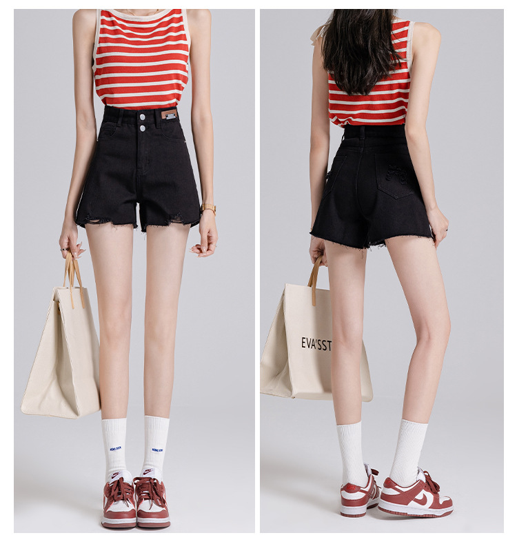 夏季穿搭【显瘦显高!秒变大长腿!】夏季薄款新款宽松阔腿高腰显瘦,时尚a字辣妹超短热裤,百搭不挑五分牛仔裤女时尚休闲热裤牛仔短裤女