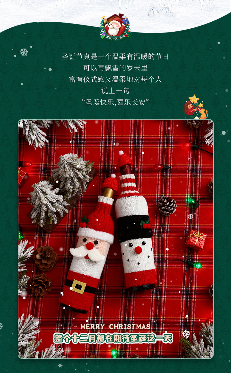 圣诞节装饰品红酒香槟套 卡通针织酒瓶套 酒店餐厅氛围感场景布置