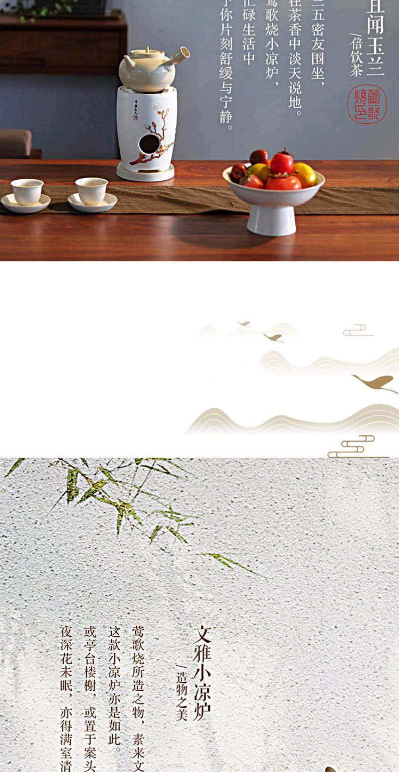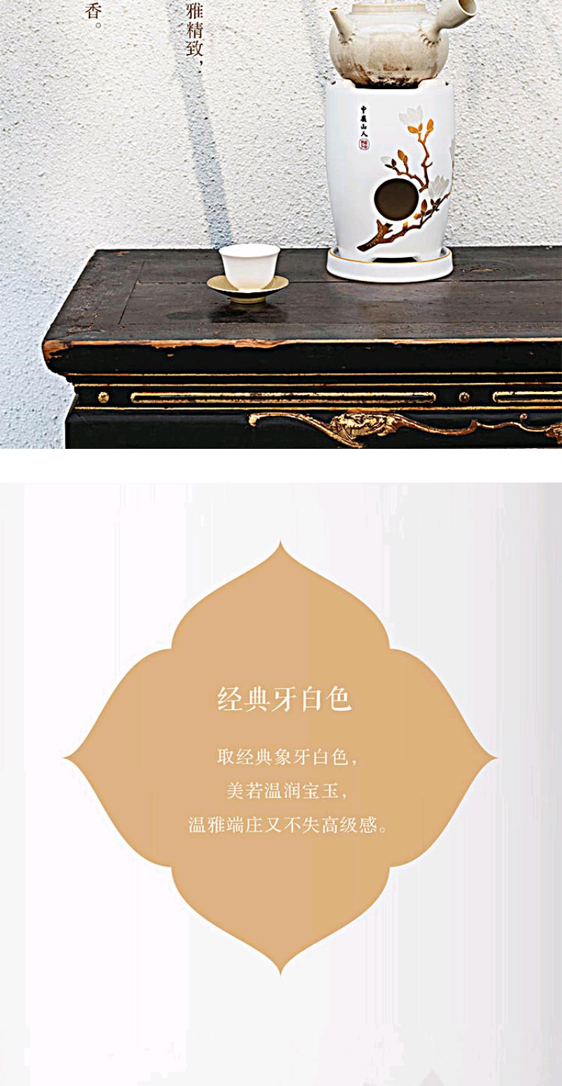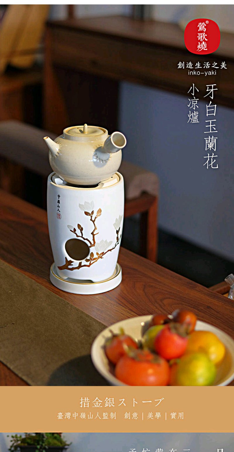 莺歌烧 牙白玉兰花 两用炉小凉炉茶道配件台式小型铁银铜壶