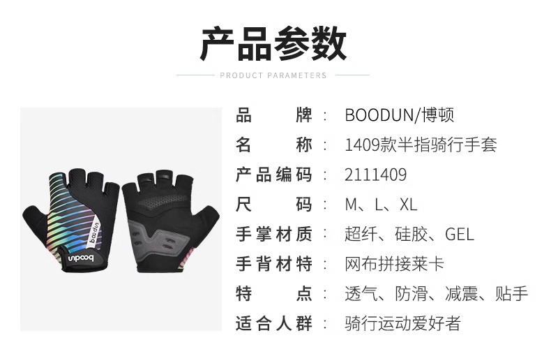 boodun骑行手套半指夏季男女公路山地自行车单车装备防滑减震透气 1409