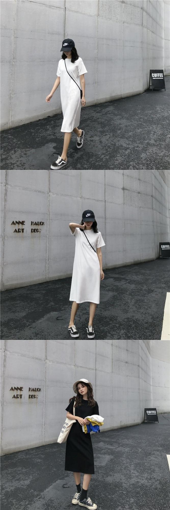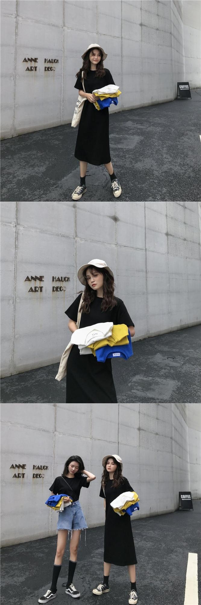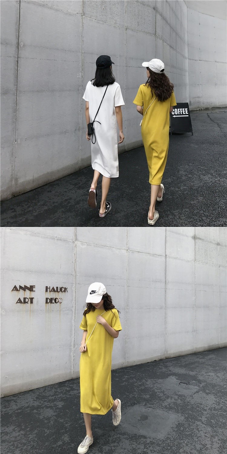 长款T恤裙夏季女装闺蜜宽松时尚中长款短袖直筒连衣裙潮cyl4