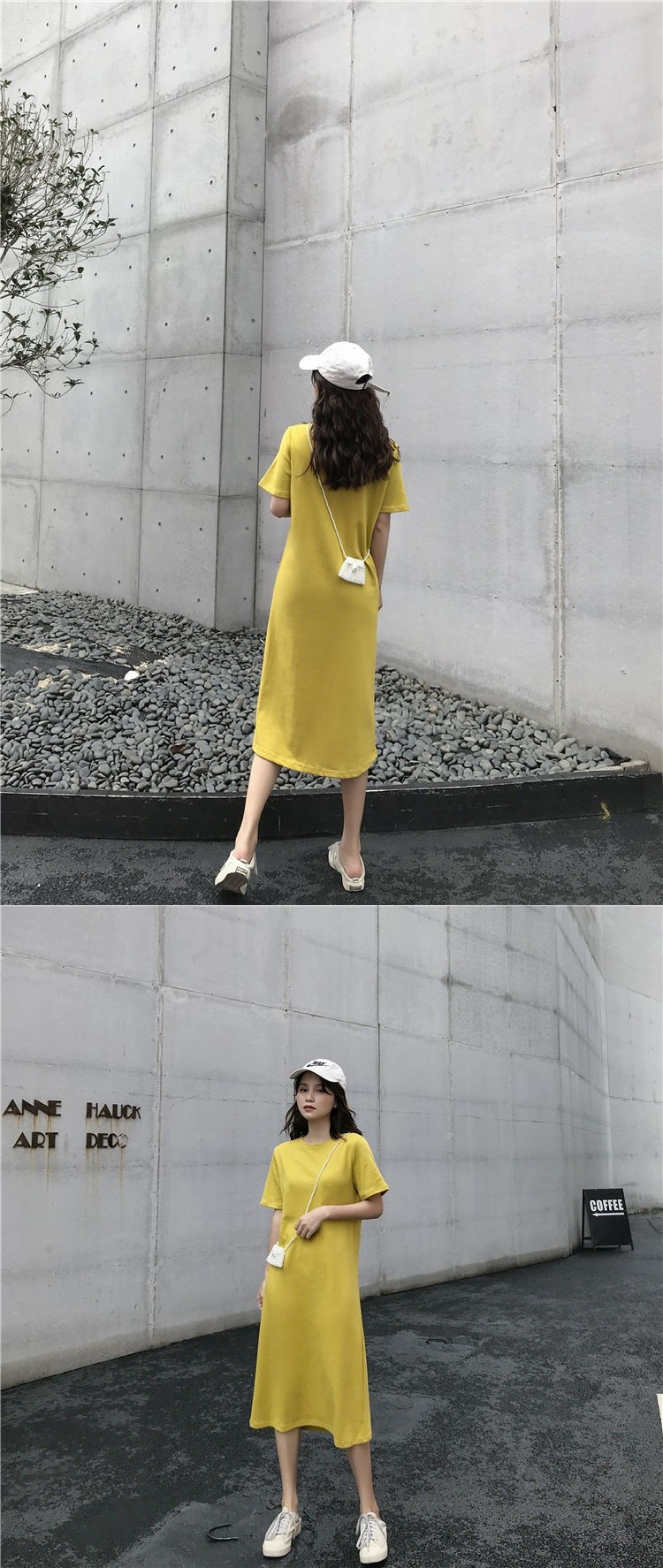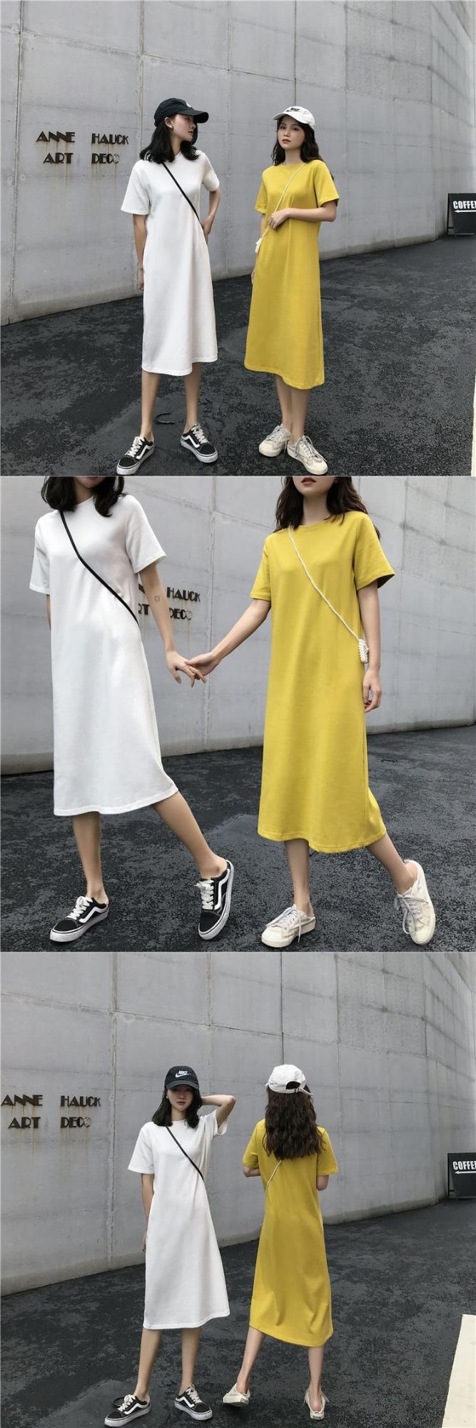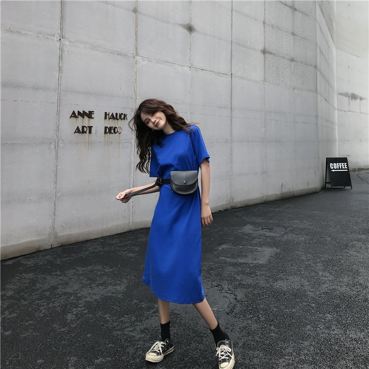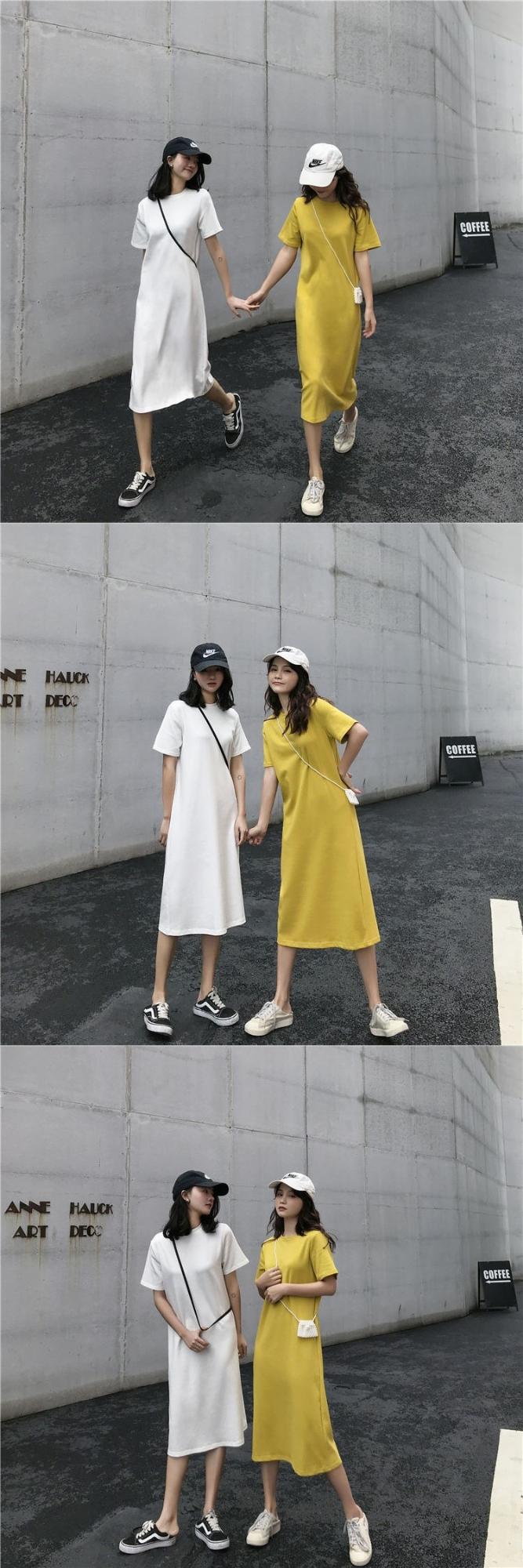 长款T恤裙夏季女装闺蜜宽松时尚中长款短袖直筒连衣裙潮cyl4