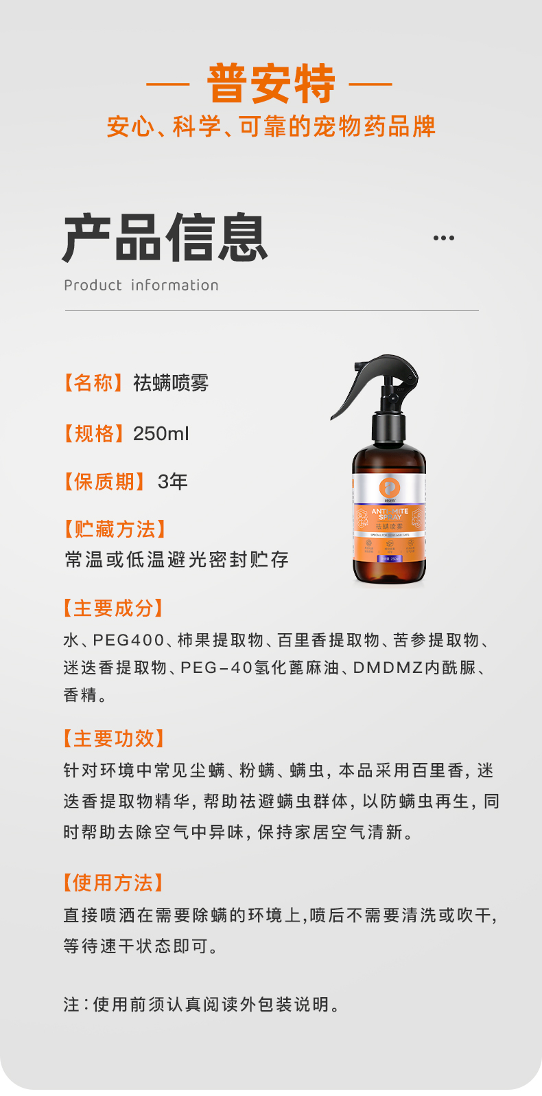 【49元任选3件】普安特除螨喷雾家用床上宠物杀螨虫被子免洗去除螨虫神器祛螨抑菌