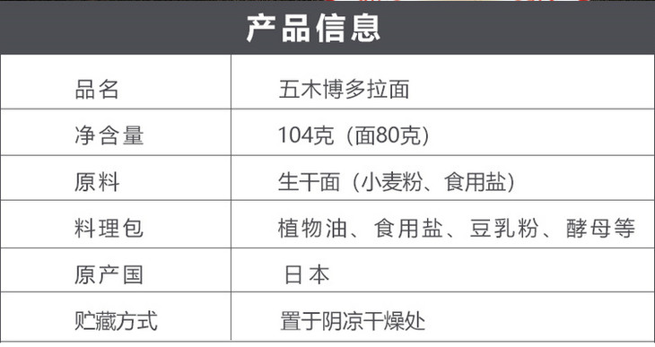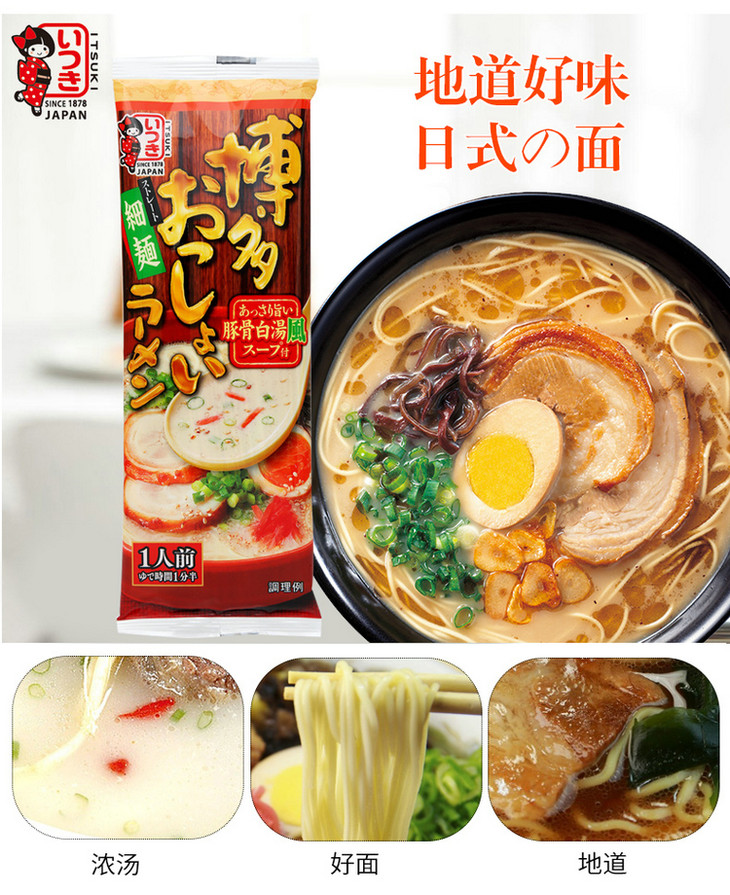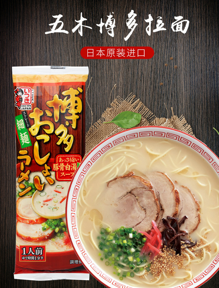 日本进口拉面 五木熊本博多猪骨拉面 速食待煮方便面带料包 104g(014387)