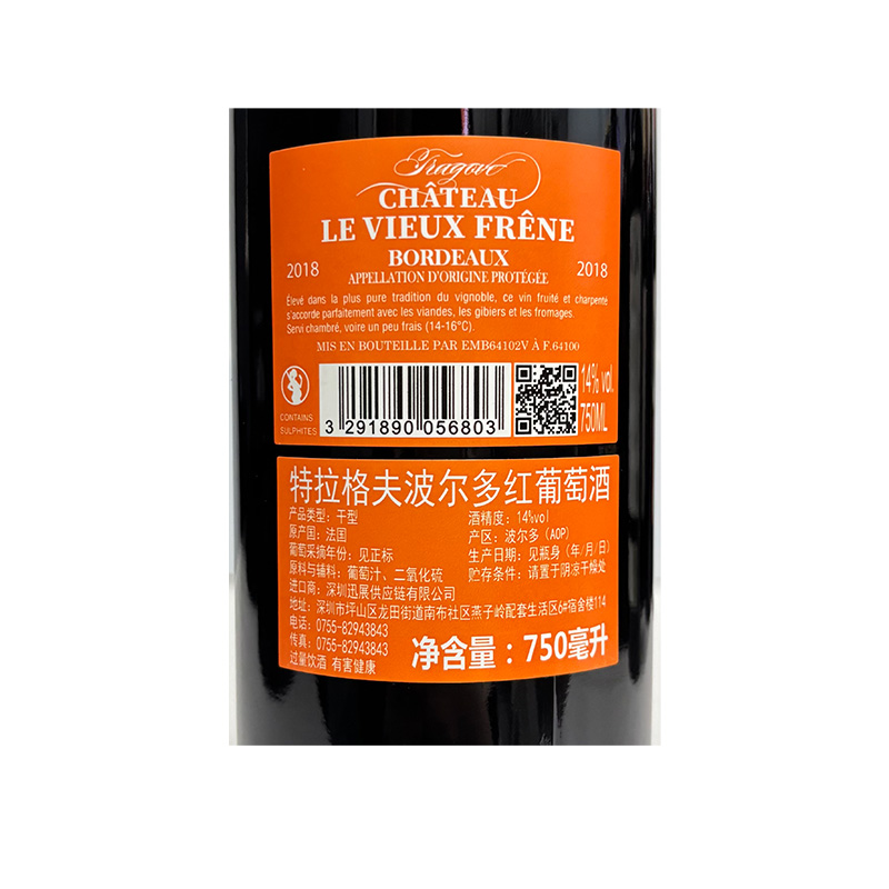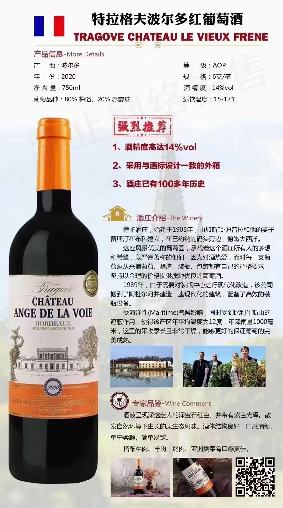 法国原瓶进口特拉格夫波尔多红葡萄酒 整箱750ml*6瓶包邮