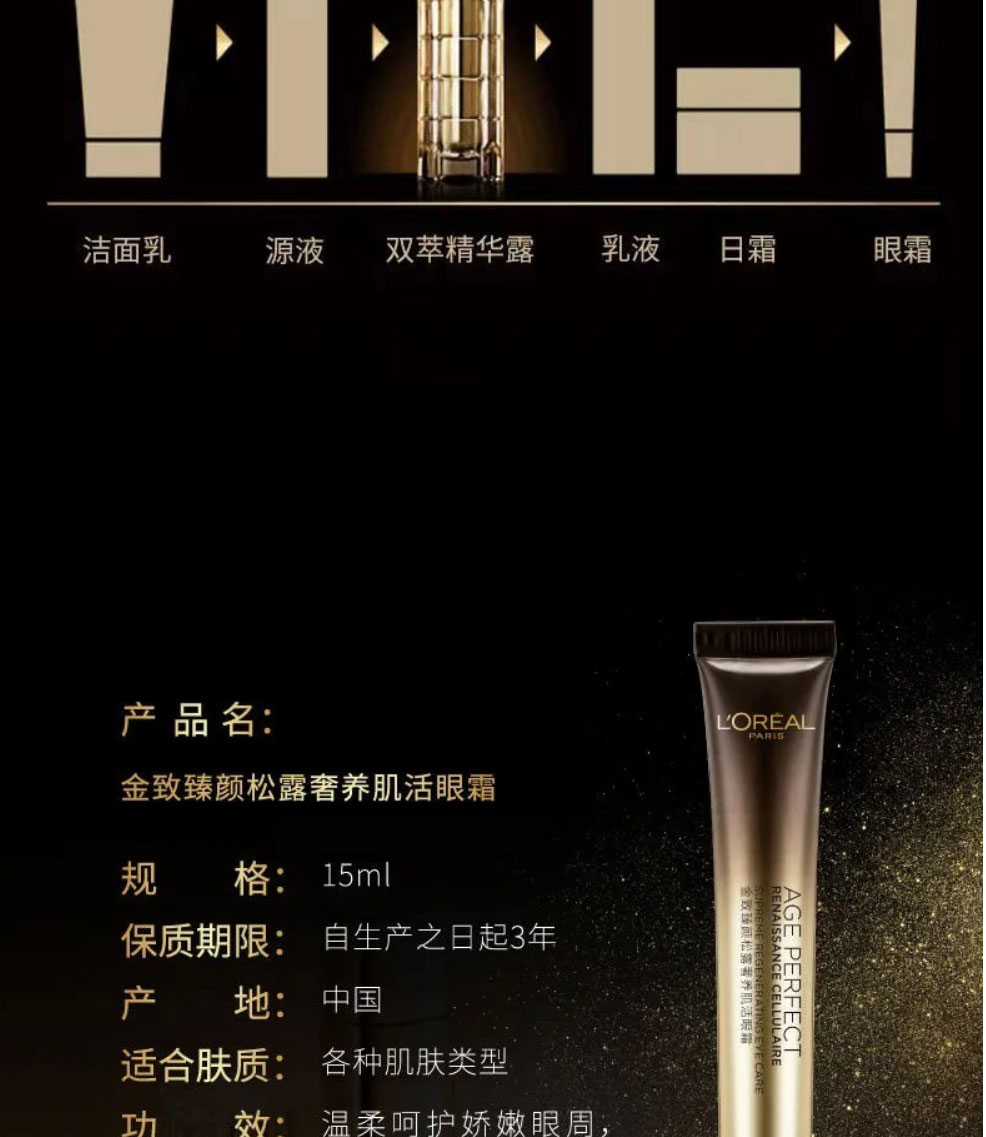 欧莱雅金致臻颜松露奢养肌活女士护肤品紧组合套装 爽肤水+乳液+修护精华+眼霜+面霜