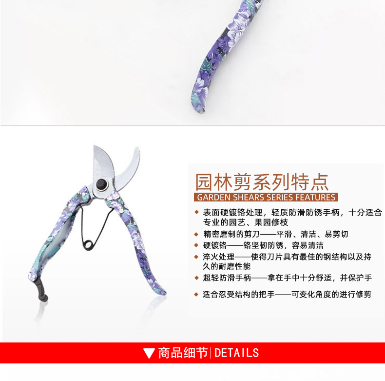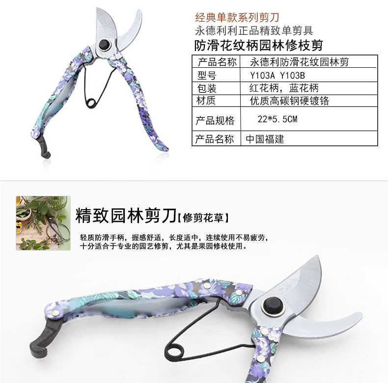 永德利花柄修枝剪园林剪家用果枝剪不锈钢绿植专用修植剪花卉剪枝