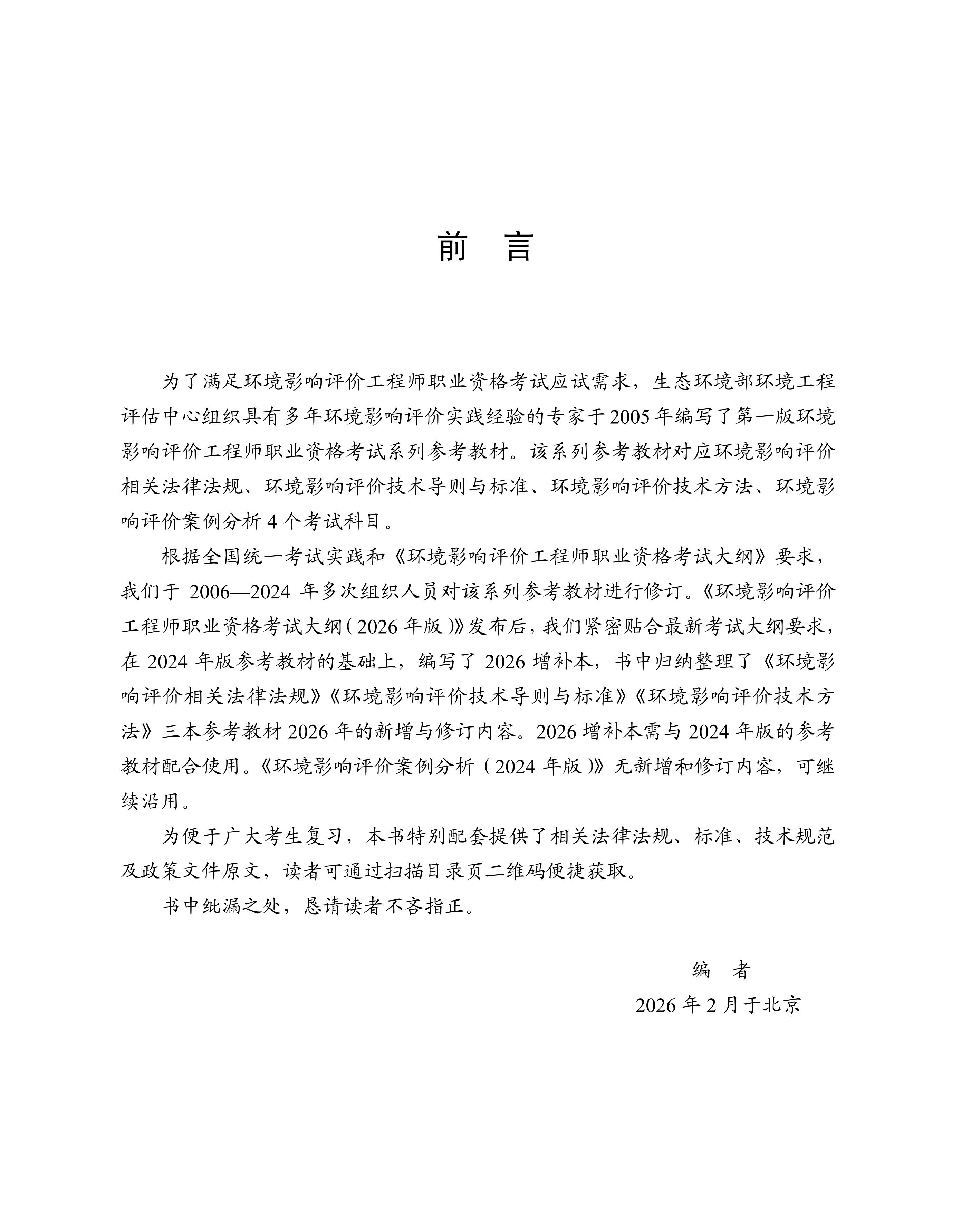 环境影响评价工程师职业资格考试参考教材:2026 增补本生态环境部环境工程评估中心编.9787511165923
