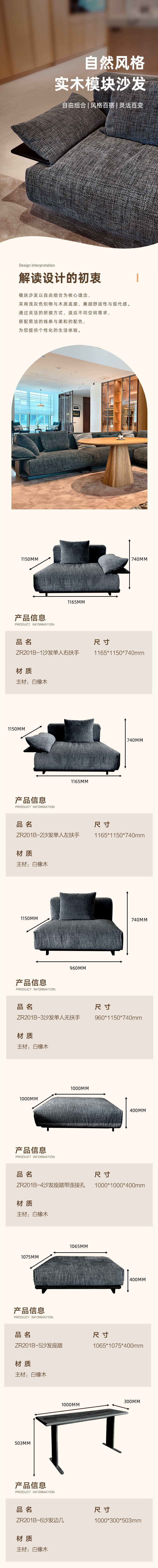 【自然风-ZR201B沙发】白橡木/布艺/灰橡色/客厅/组合沙发/模块沙发