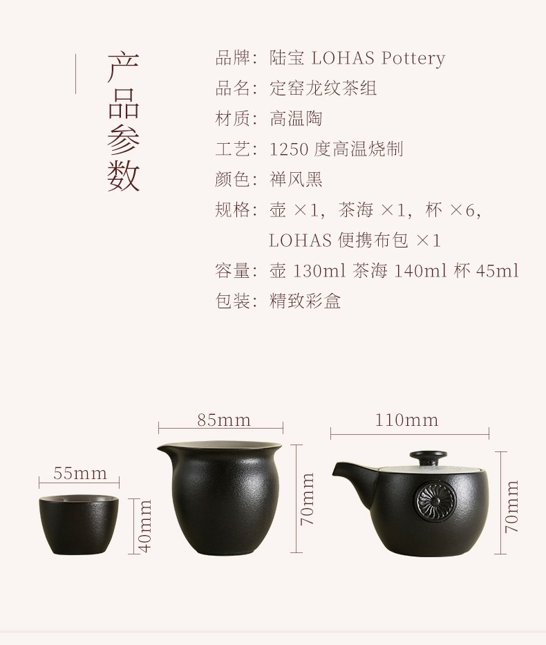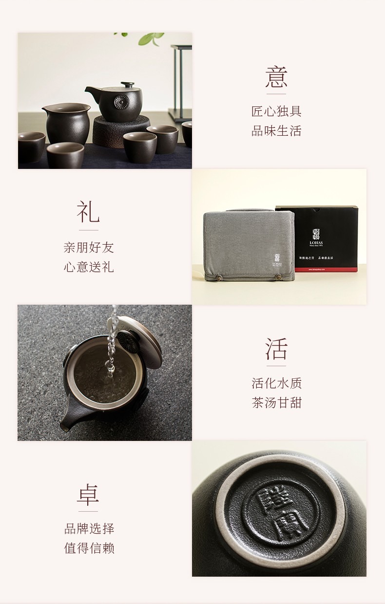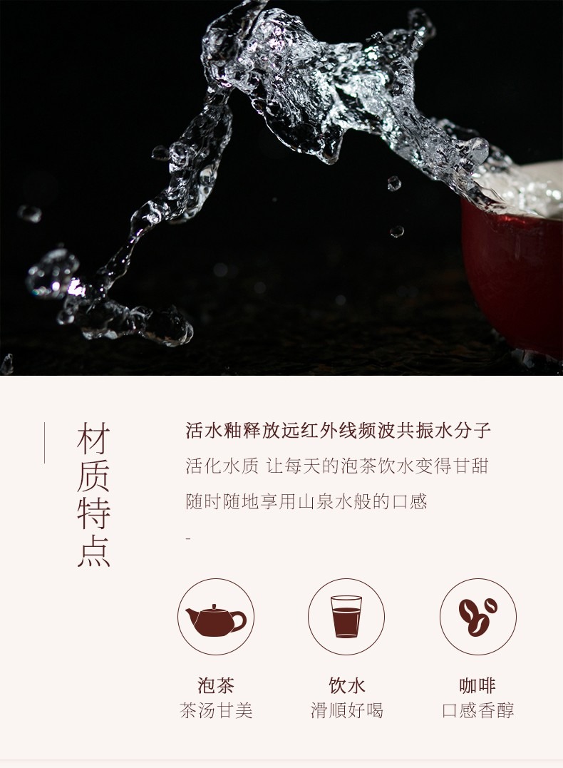 配 置:壶×1, 杯×6,茶海×1,布包×1,活水陶