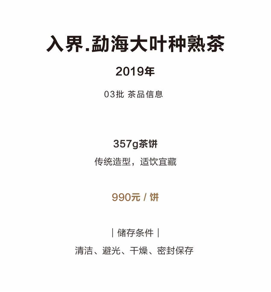 勐海大叶种熟茶03批 茶饼357g 2019年