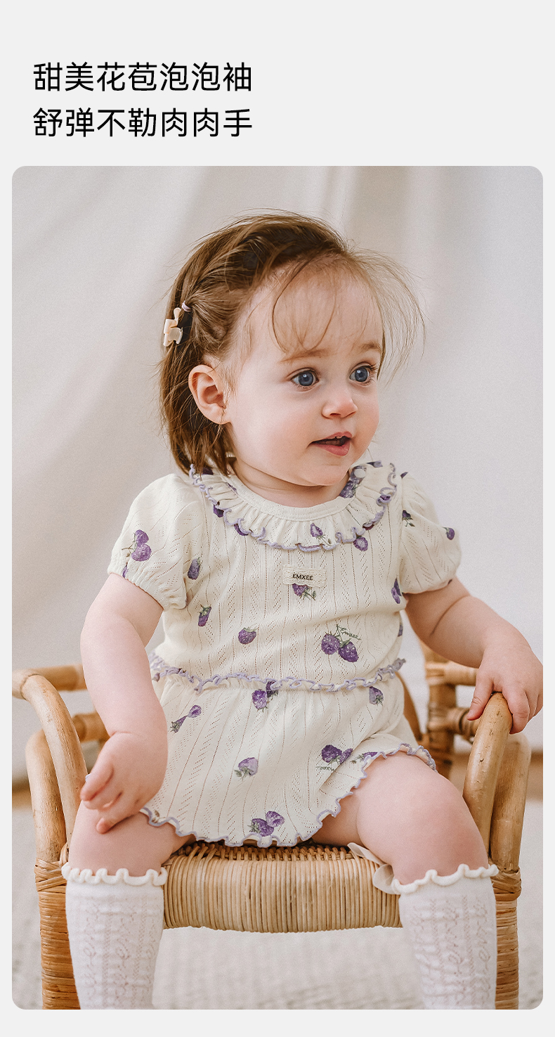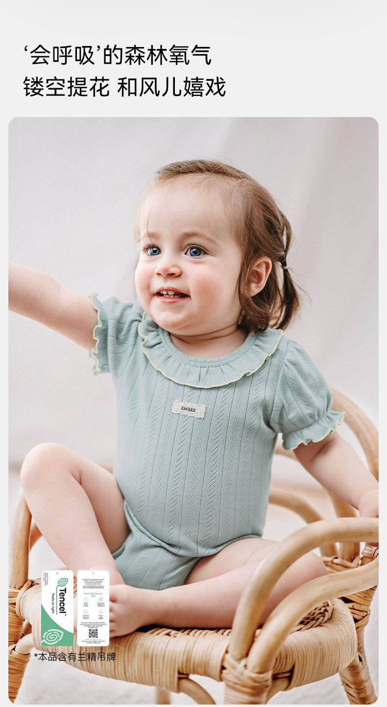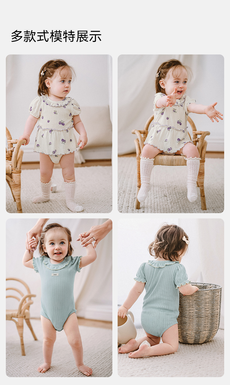【宝宝服饰】嫚熙婴儿连体衣夏季薄款宝宝包屁衣透气网眼短袖爬服