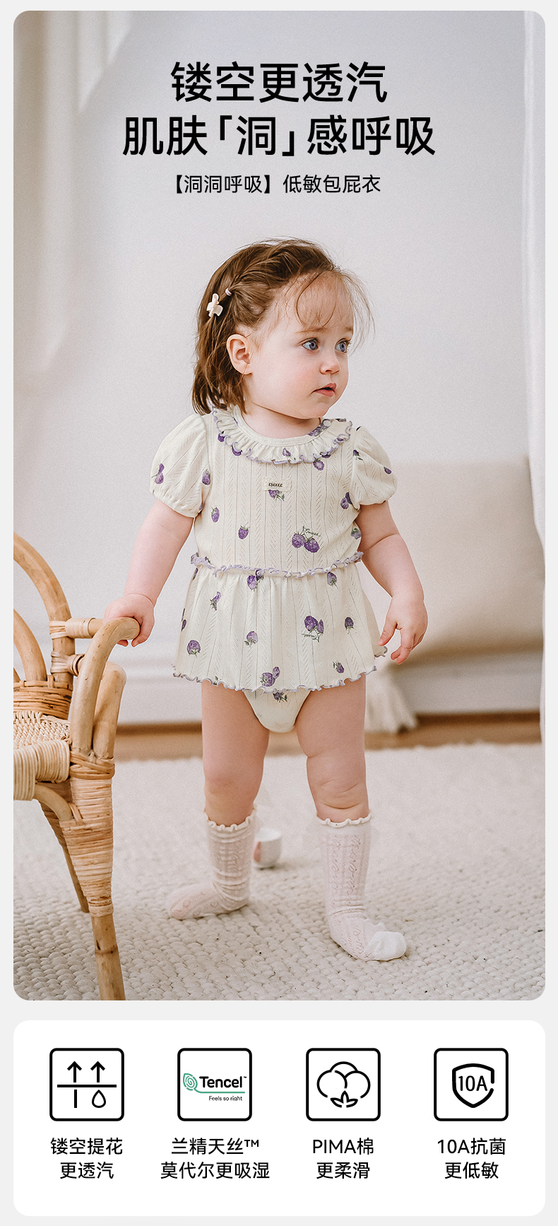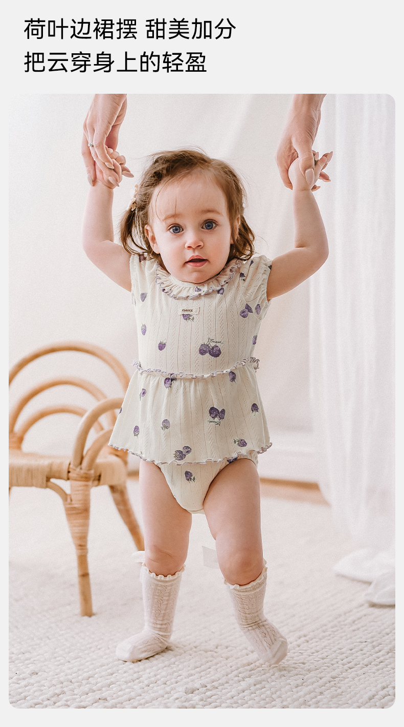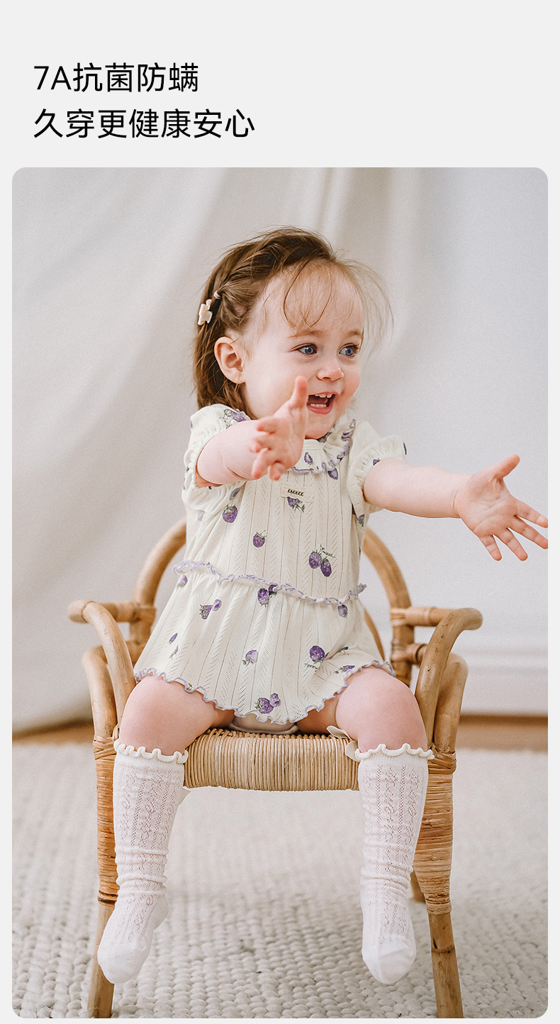 【宝宝服饰】嫚熙婴儿连体衣夏季薄款宝宝包屁衣透气网眼短袖爬服