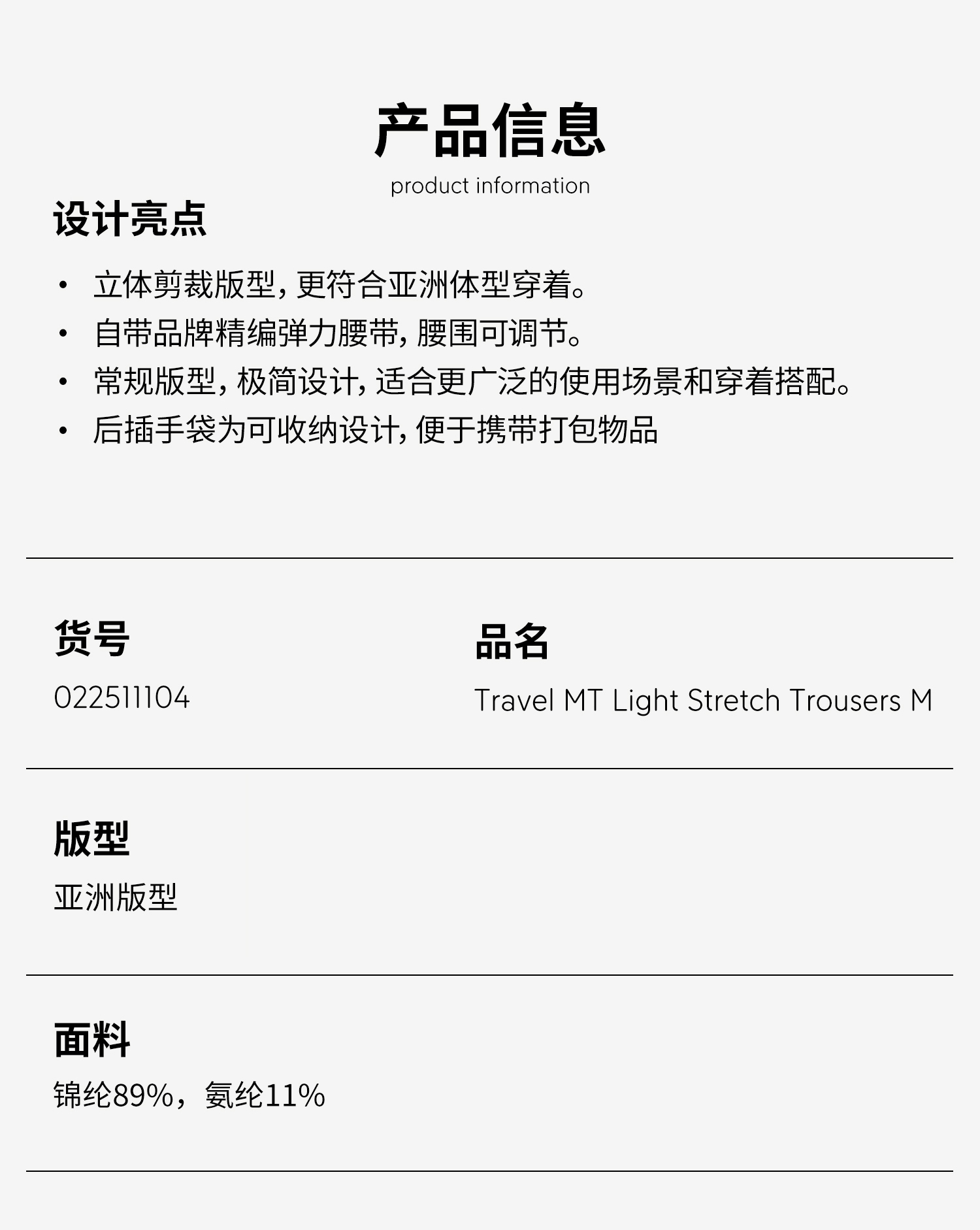 北极狐 男士户外运动长裤 2025春夏新款弹性徒步登山裤022511104