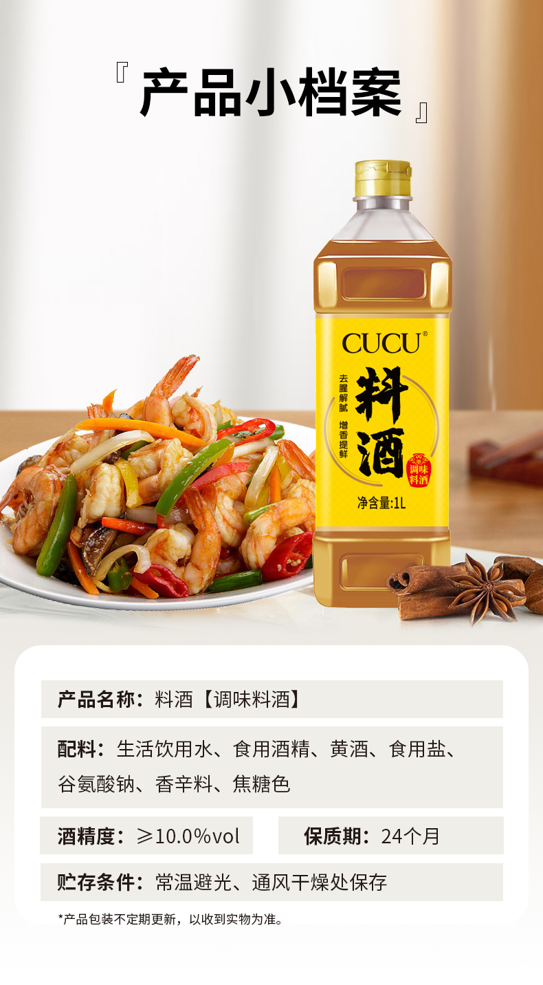 厨房家用调味料酒 去腥提味解膻烹调炒菜烹饪 去腥解腻 提味增鲜