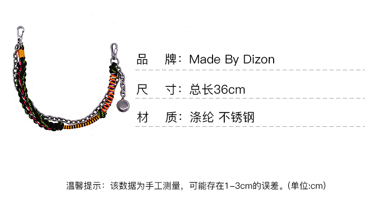 madebydizon 编织黑黄挂链 手袋吊链 人工古法编织裤链牛子裤搭配
