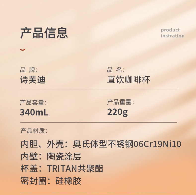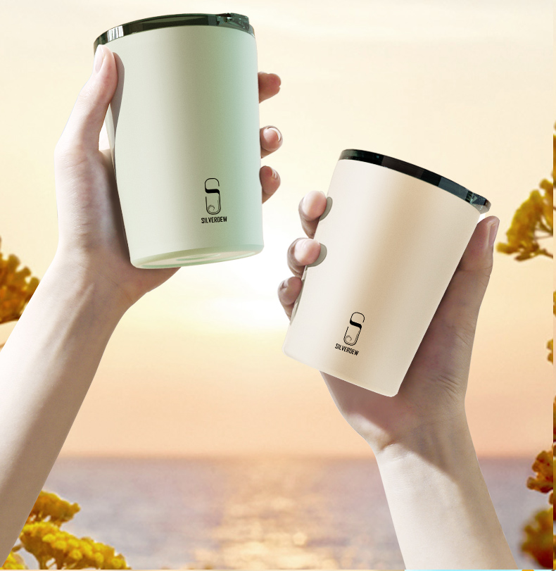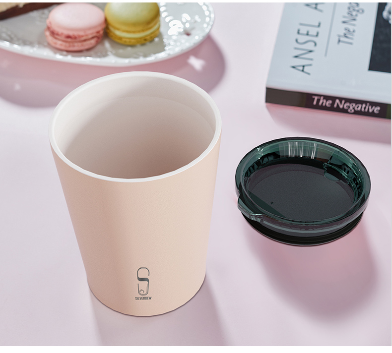 诗芙迪SILVERDEW 陶瓷内胆咖啡杯保温随行杯马克杯吸管杯不锈钢直饮带盖水杯
