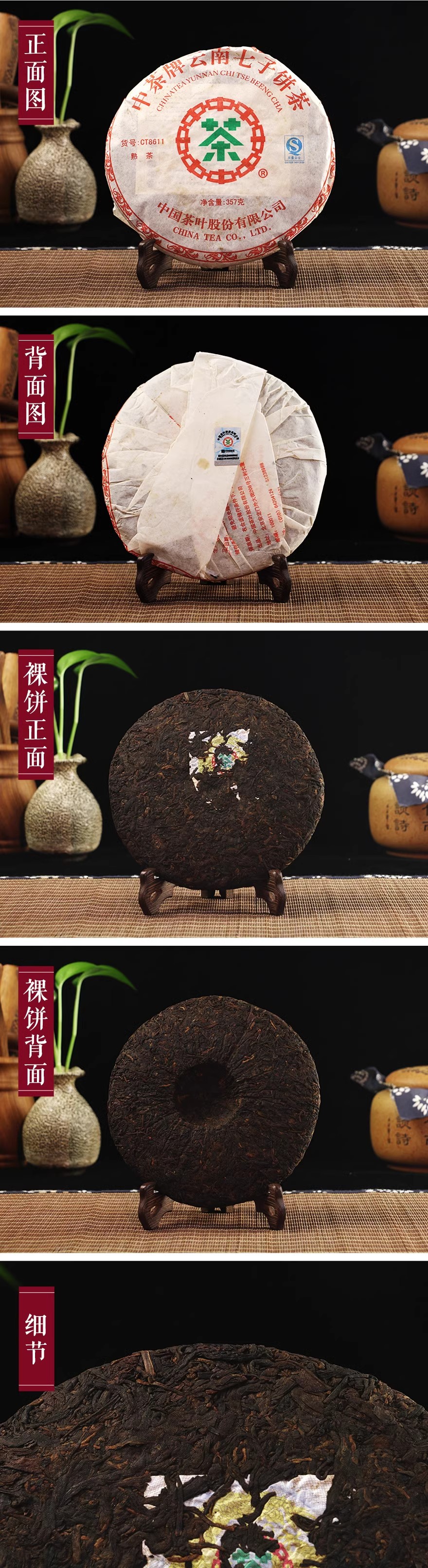 中粮-中茶2007年8611普洱熟茶饼16年陈老茶357克/片/干仓直发