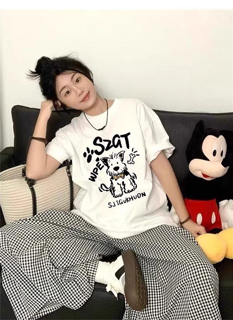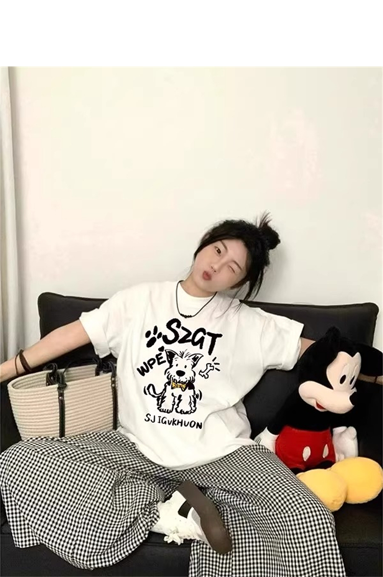 西遇韩系卡通印花短袖T恤女2026年夏季新款慵懒风圆领宽松上衣SS060257