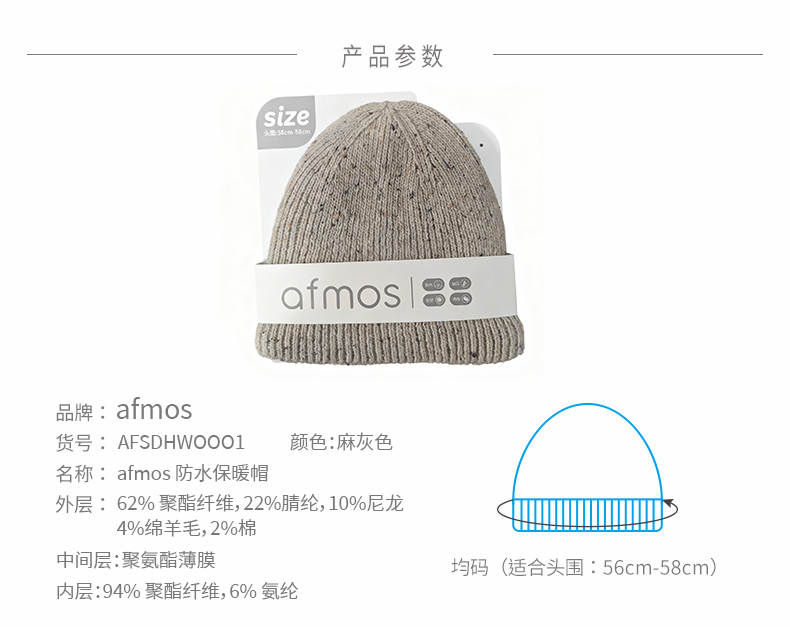 afmos户外防风防水保暖帽子男女秋冬登山滑雪徒步防雨针织毛线帽