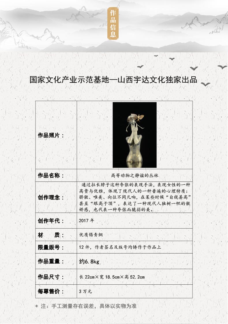 宇达青铜文化 限量12版 青铜雕塑艺术品《高等动物之静谧的丛林》 作者:毛锎 高52.2cm