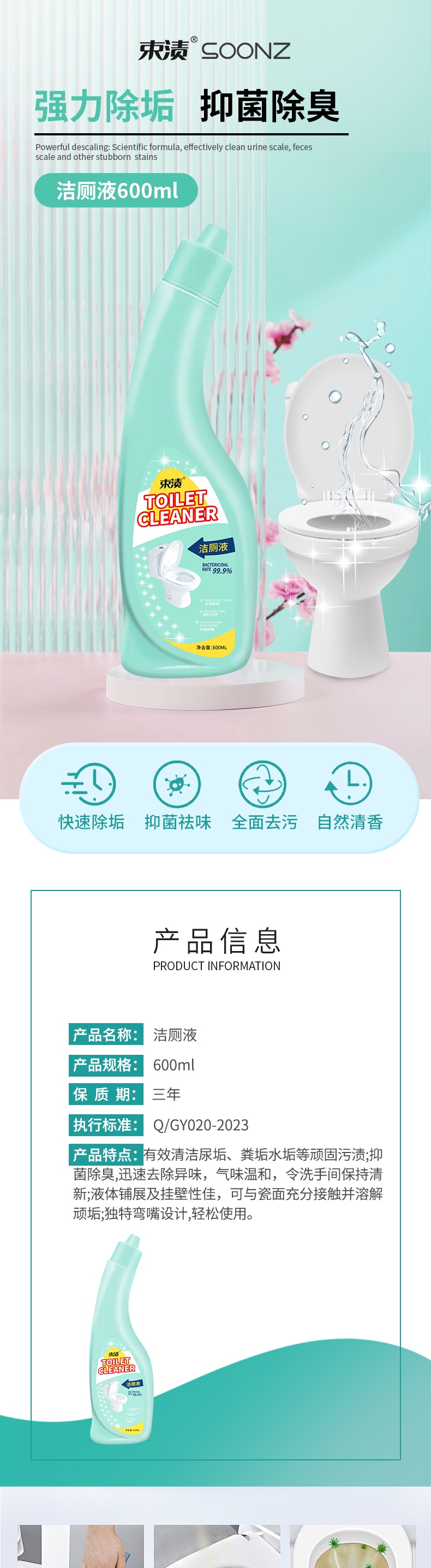 【自营】束渍-洁厕液(600ml)强力去尿垢除菌去味弯嘴
