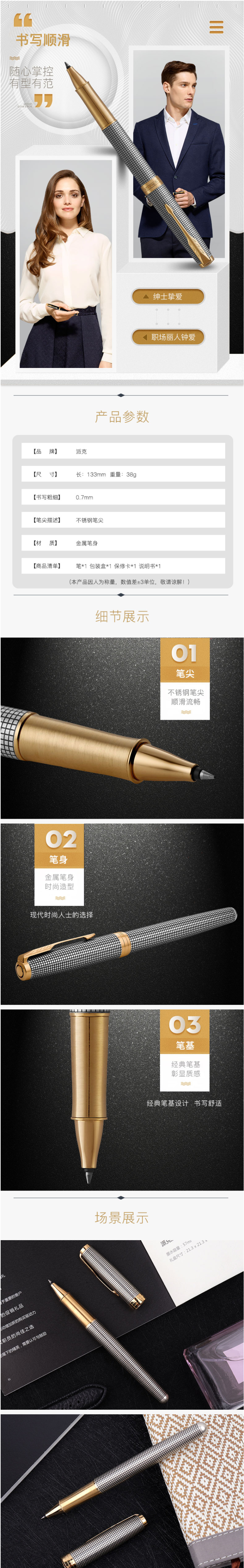 派克卓尔金色流年宝珠笔