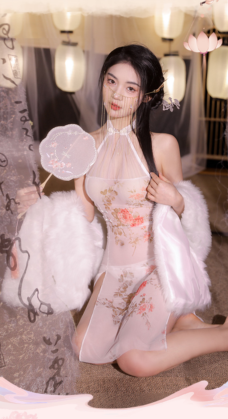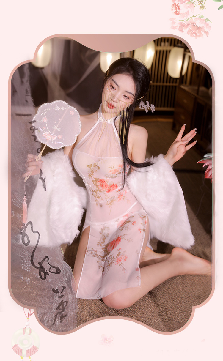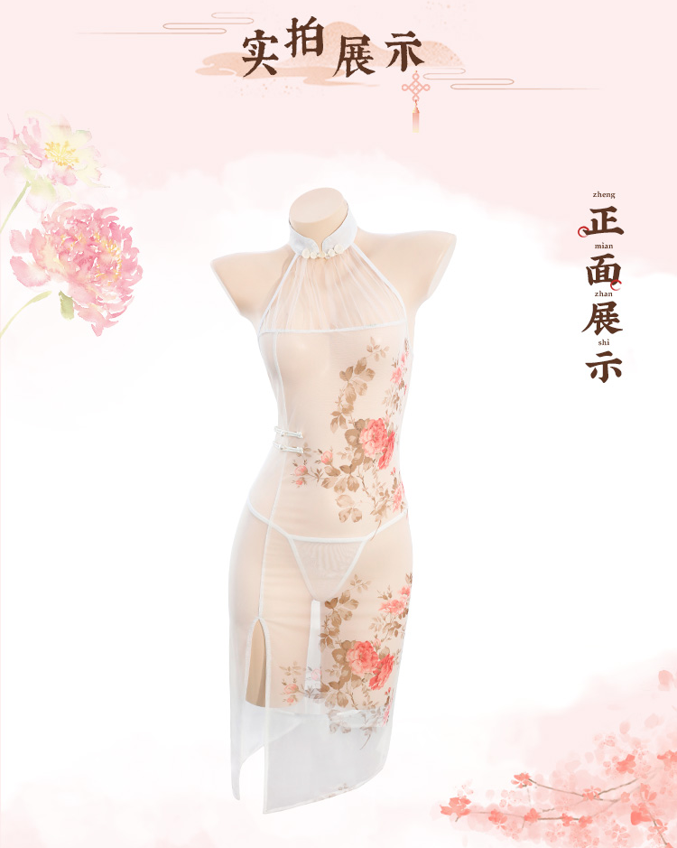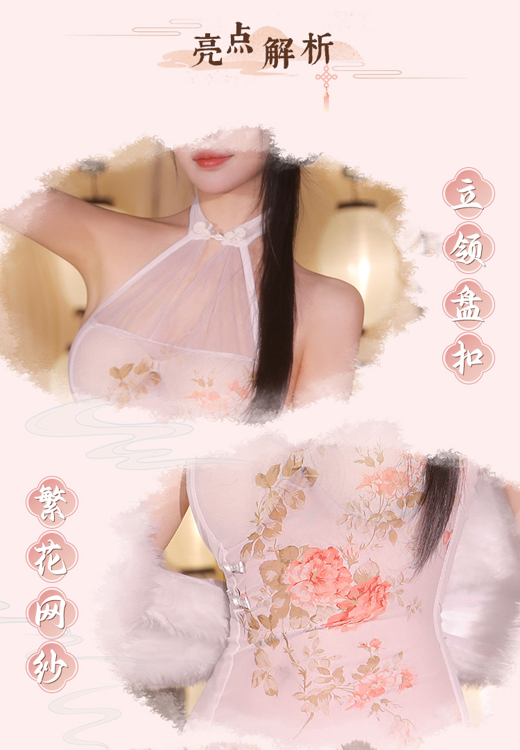 【直供】安太医新品【芳醺玉沁】中式情趣内衣繁花似锦开叉透身旗袍睡裙挂脖式性感连衣裙