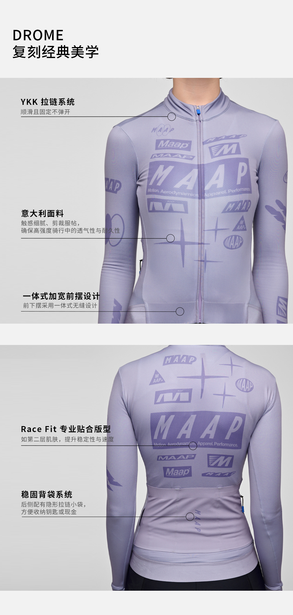 MAAP 女士 Drome 系列 加绒长袖骑行服 闪银紫