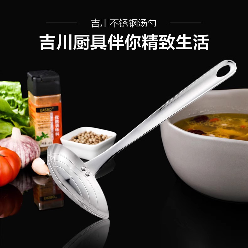 【非同款】日本Yoshikawa吉川不锈钢汤长柄勺自带刻度侧边开口厨房用具长勺 25cm