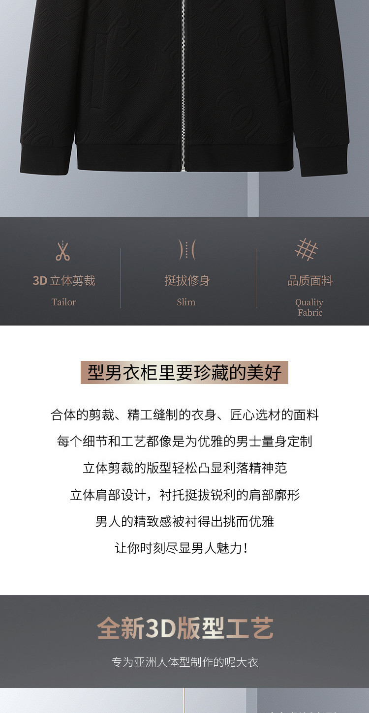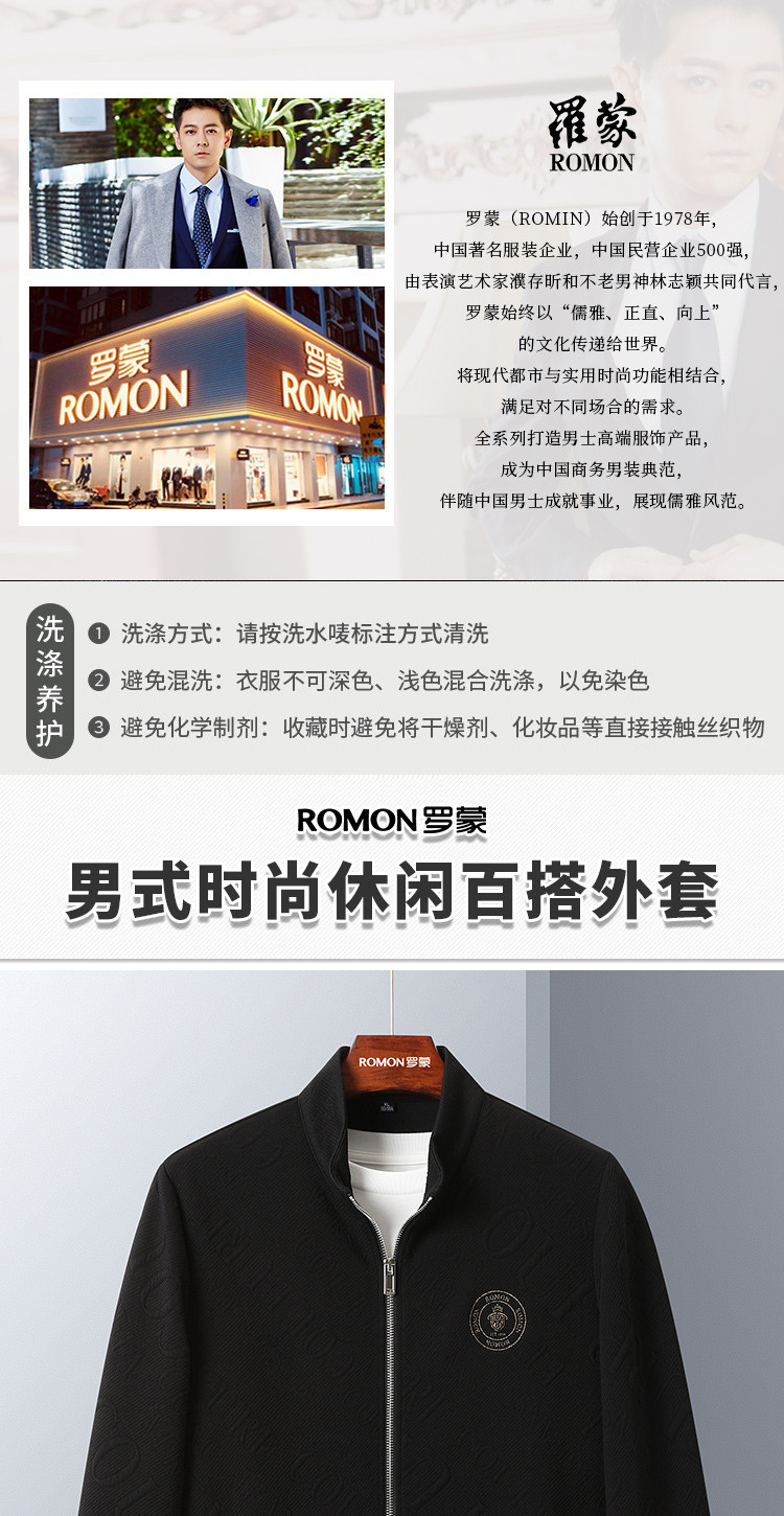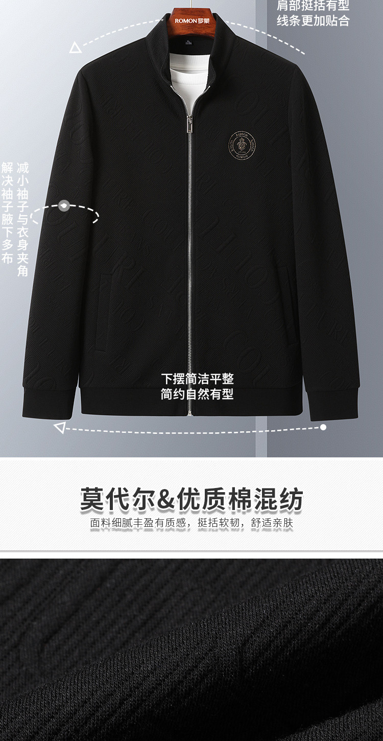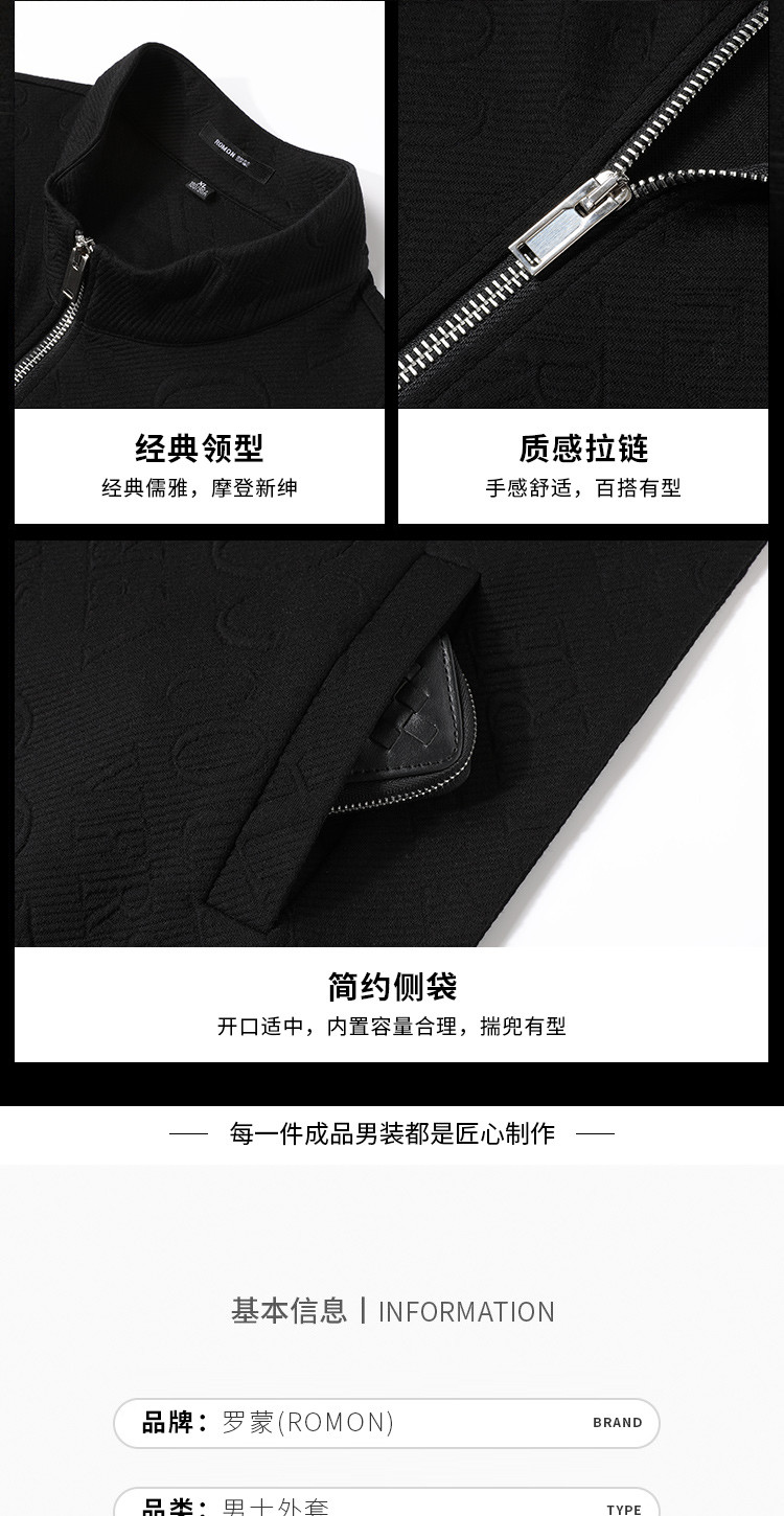 【舒适微弹】罗蒙春季男士外套优质棉混纺简约休闲时尚百搭立领外套男