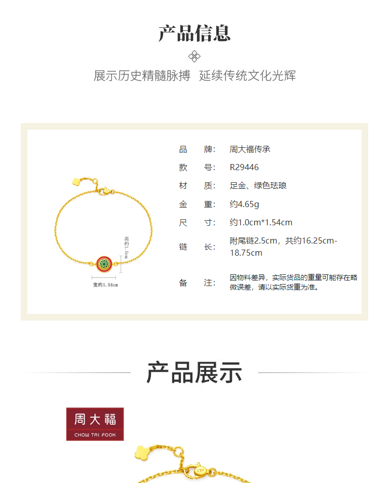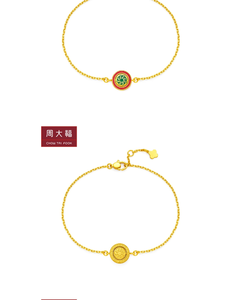 周大福如来敦煌传承煌彩珐琅足金黄金手链R29446
