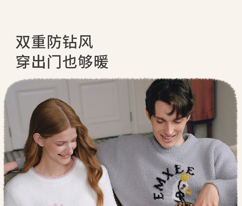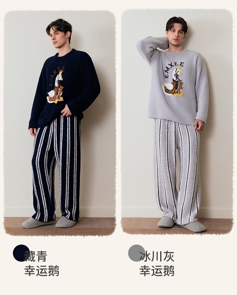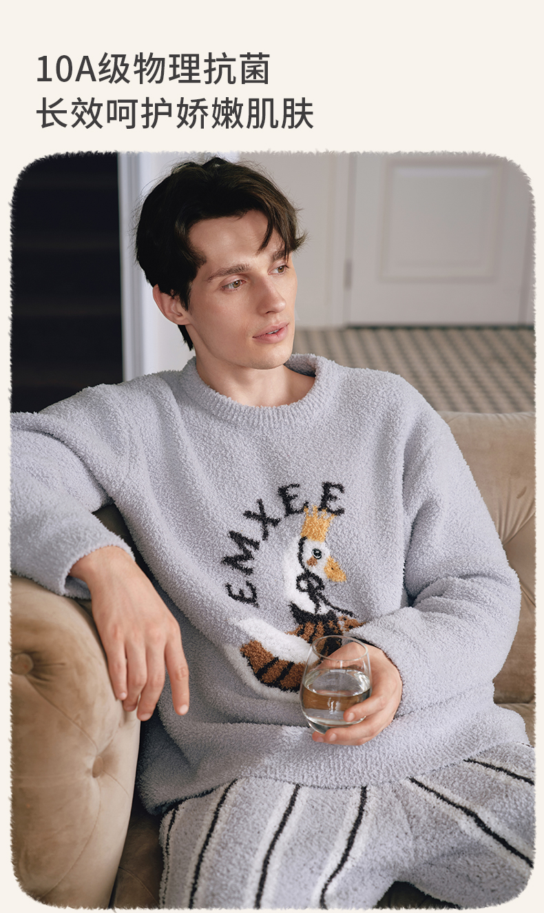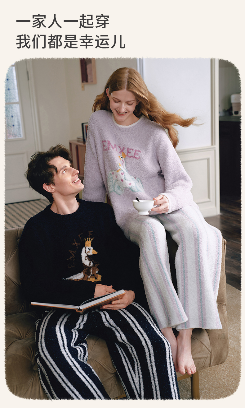【家居服专场】嫚熙秋冬牛油果半边绒女士睡衣情侣加绒家居服套装2025新款