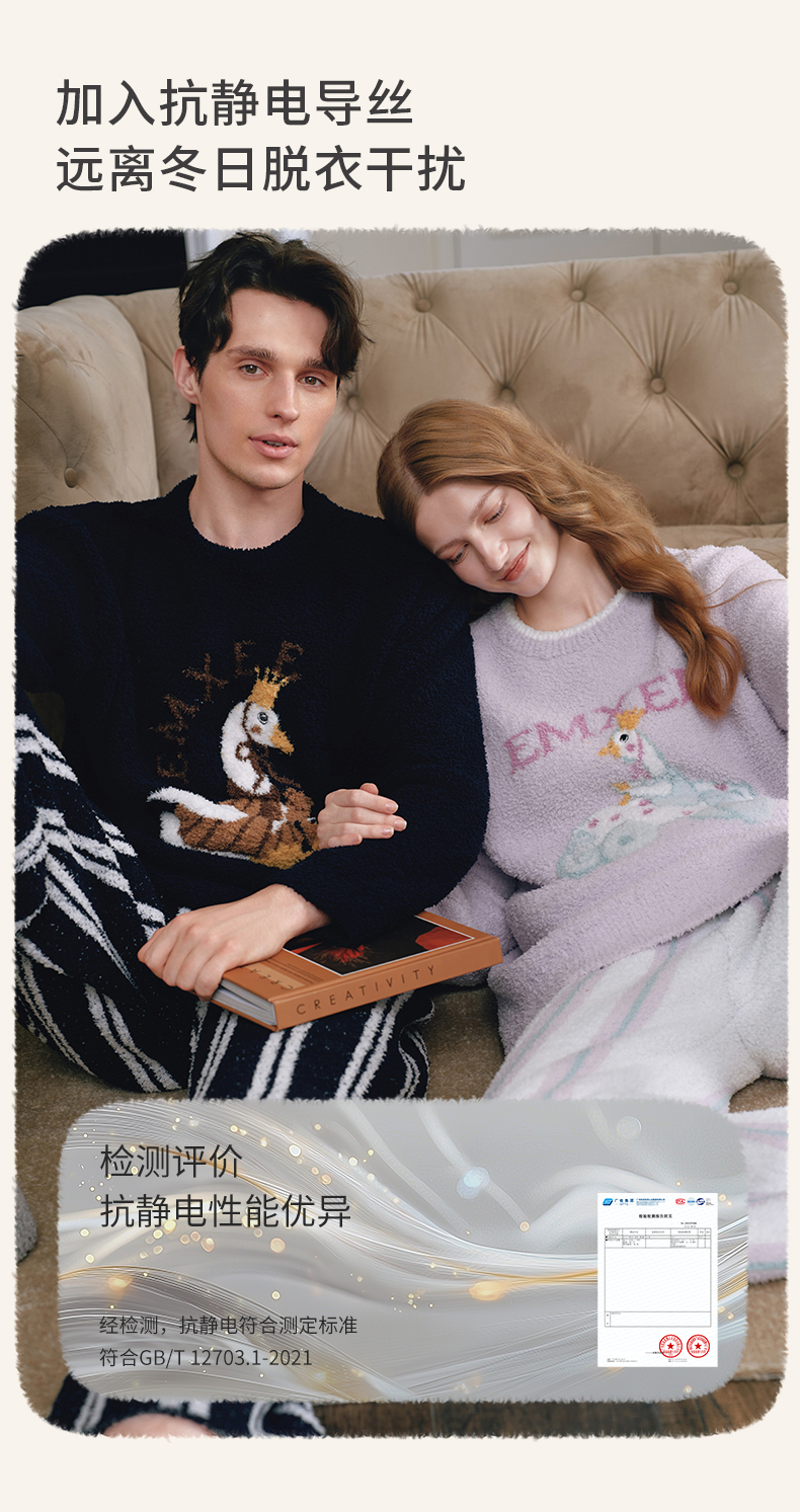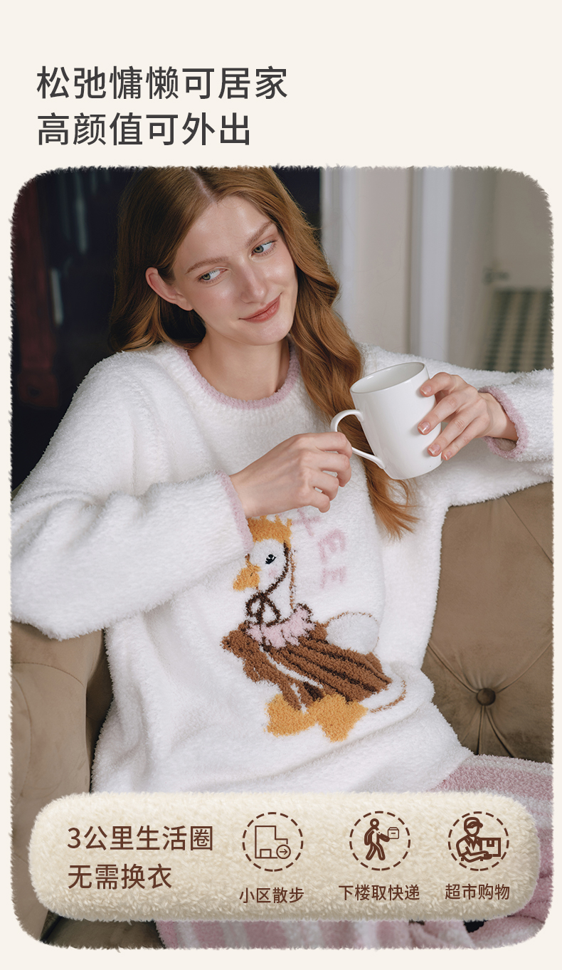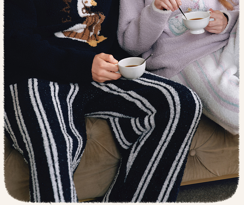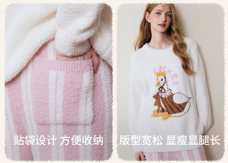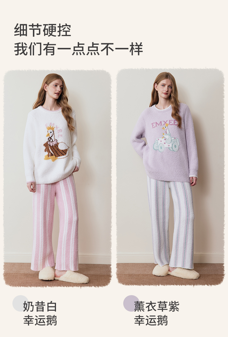【家居服专场】嫚熙秋冬牛油果半边绒女士睡衣情侣加绒家居服套装2025新款