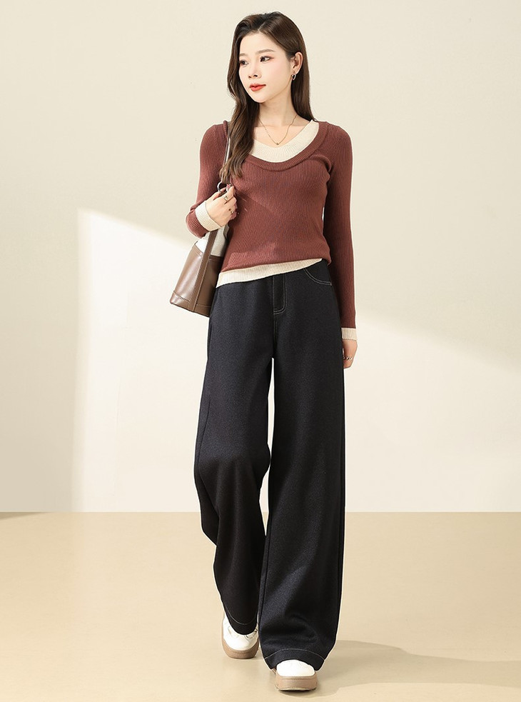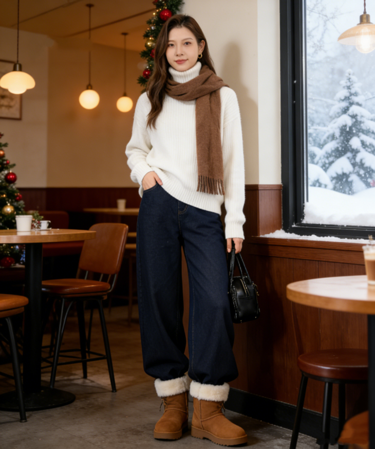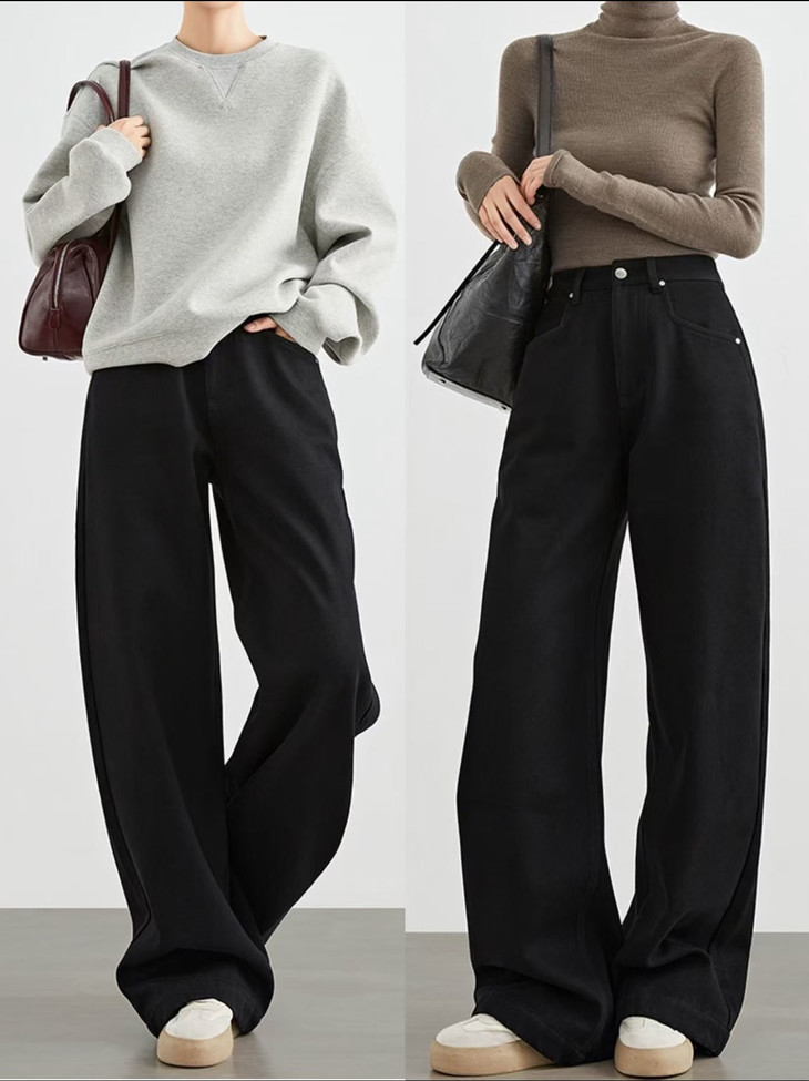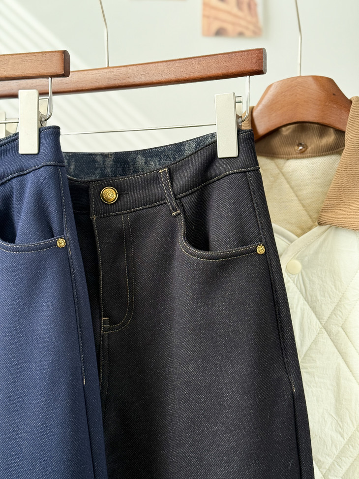 年底限时特价 显瘦到不敢相信!口碑返场!女神必备款羊毛蚕丝加绒牛仔裤加绒羊绒蚕丝软牛仔裤女秋冬新款高腰加厚阔腿裤宽松保暖棉裤!一条解决妈妈臀,卡裆掉档,鼓包显三角区等问题