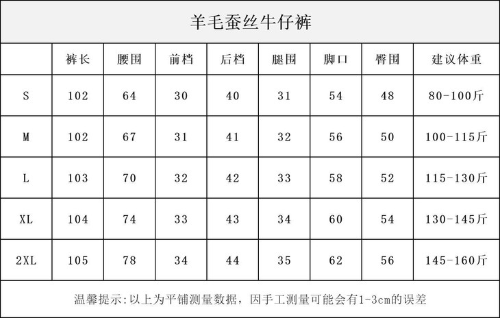 【下单名称】M260107女神必备款羊毛蚕丝牛仔裤