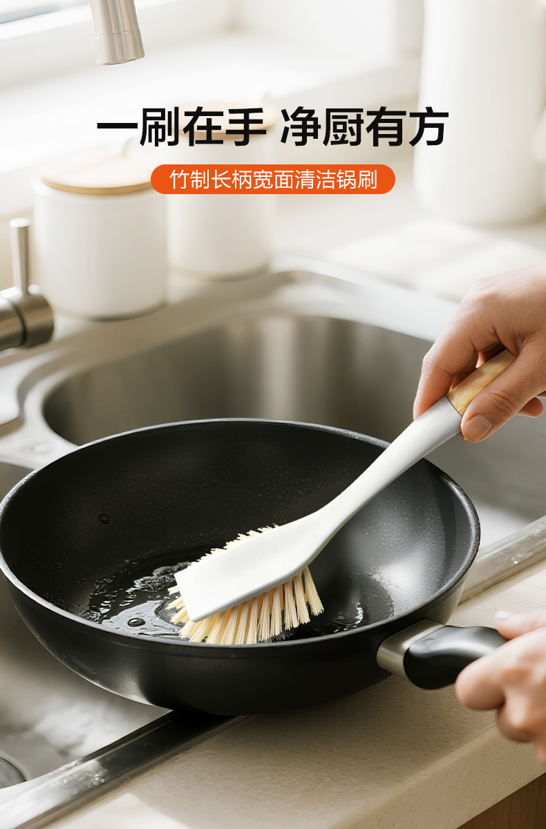 【多样屋专柜】多样屋竹制长柄宽面清洁锅刷