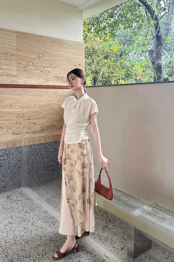 EMC亿美丞 拼色条纹长版缎面背心 1685