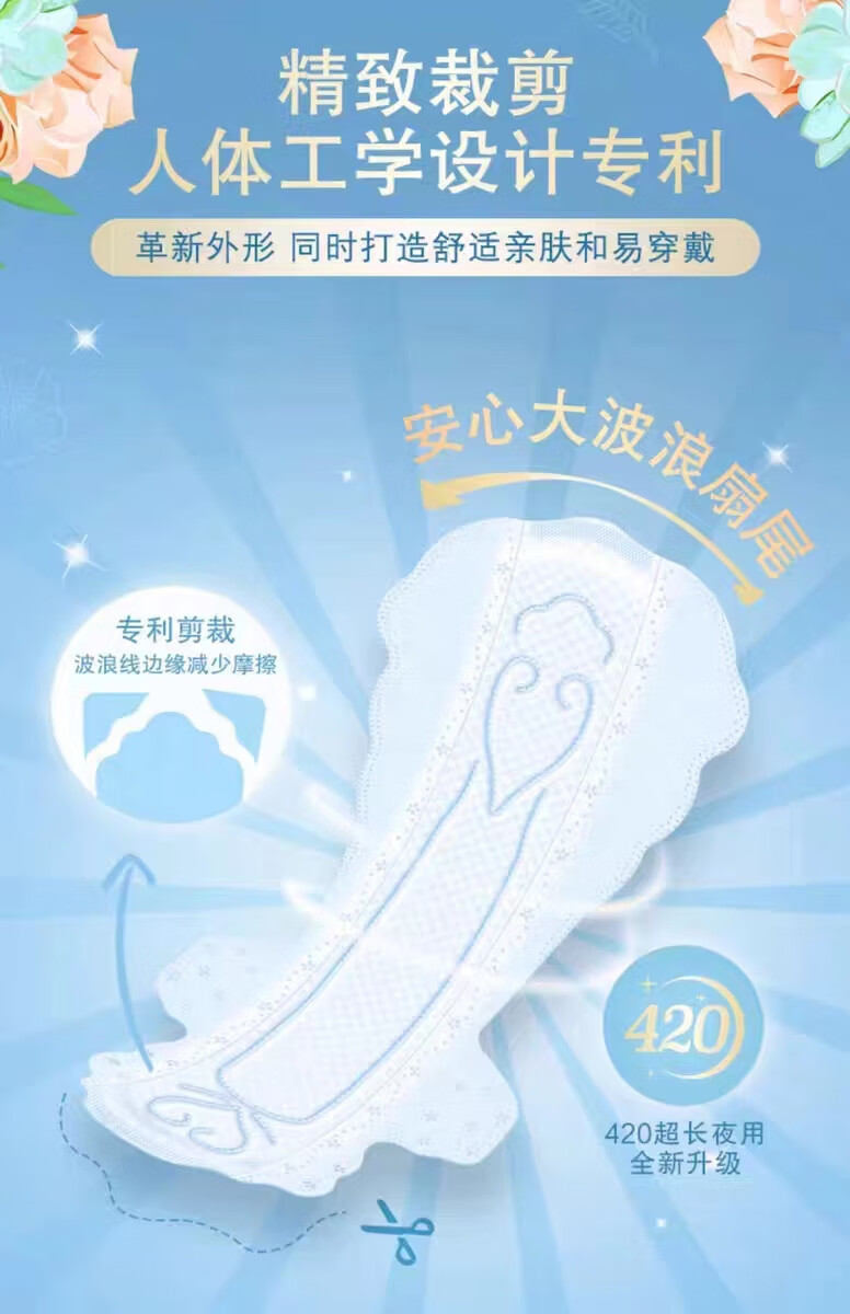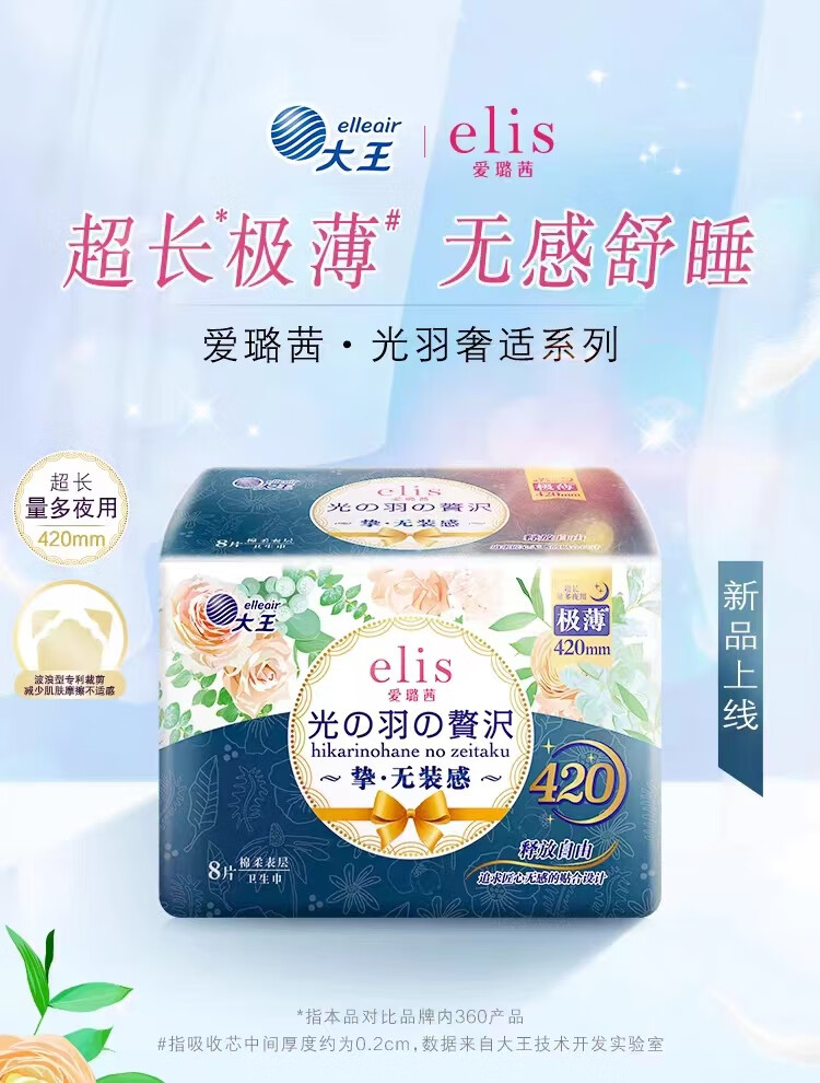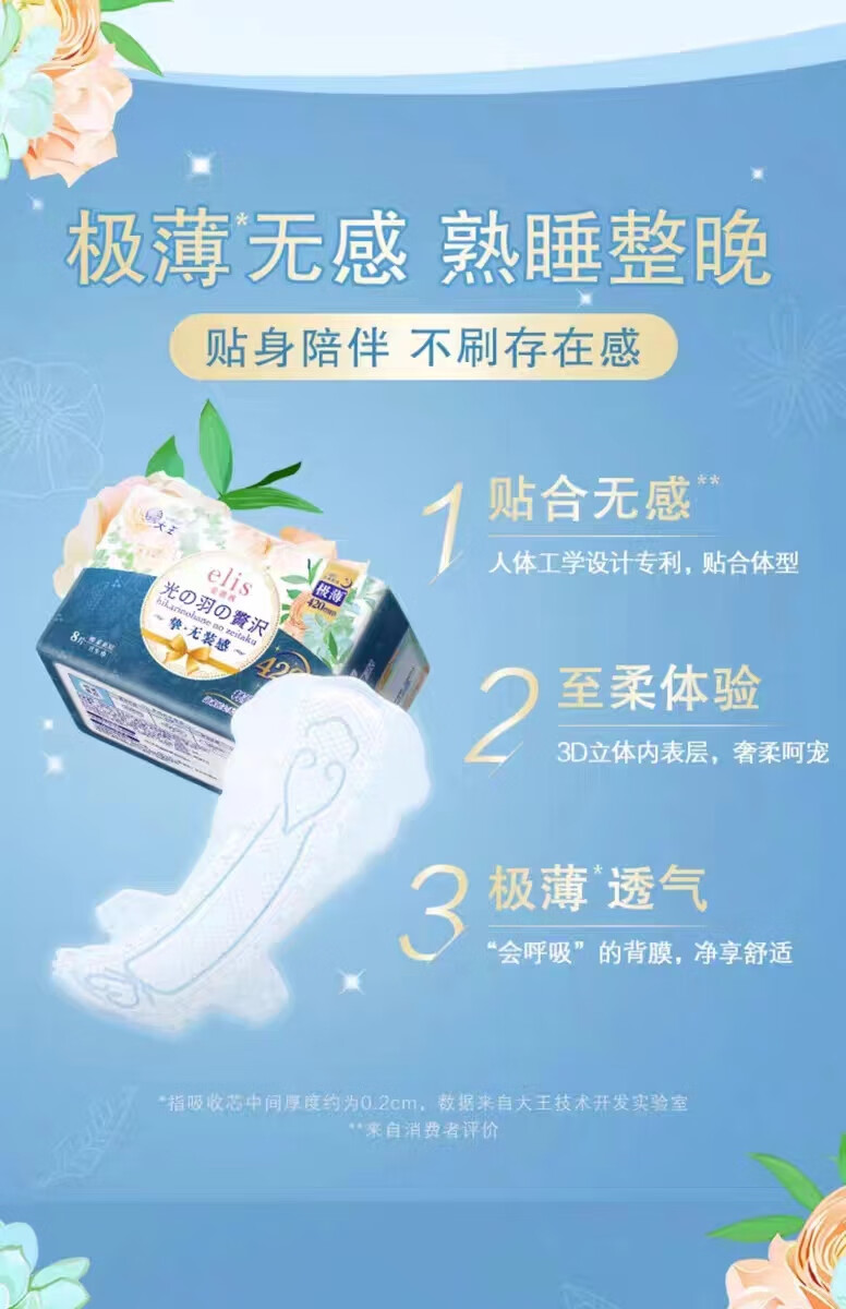【买四送一】大王光羽奢适极薄棉柔夜用卫生巾420MM 8片/份