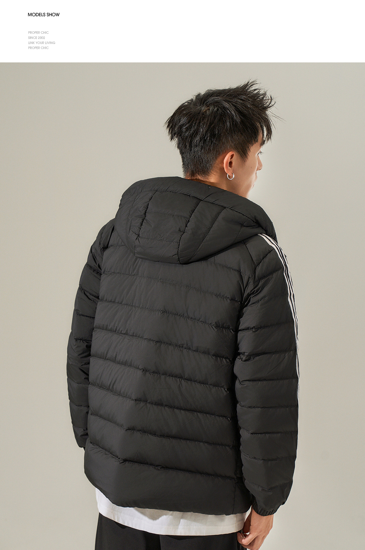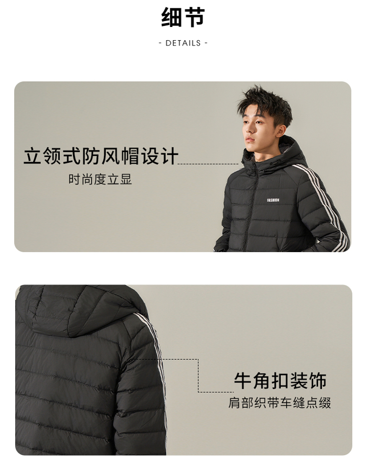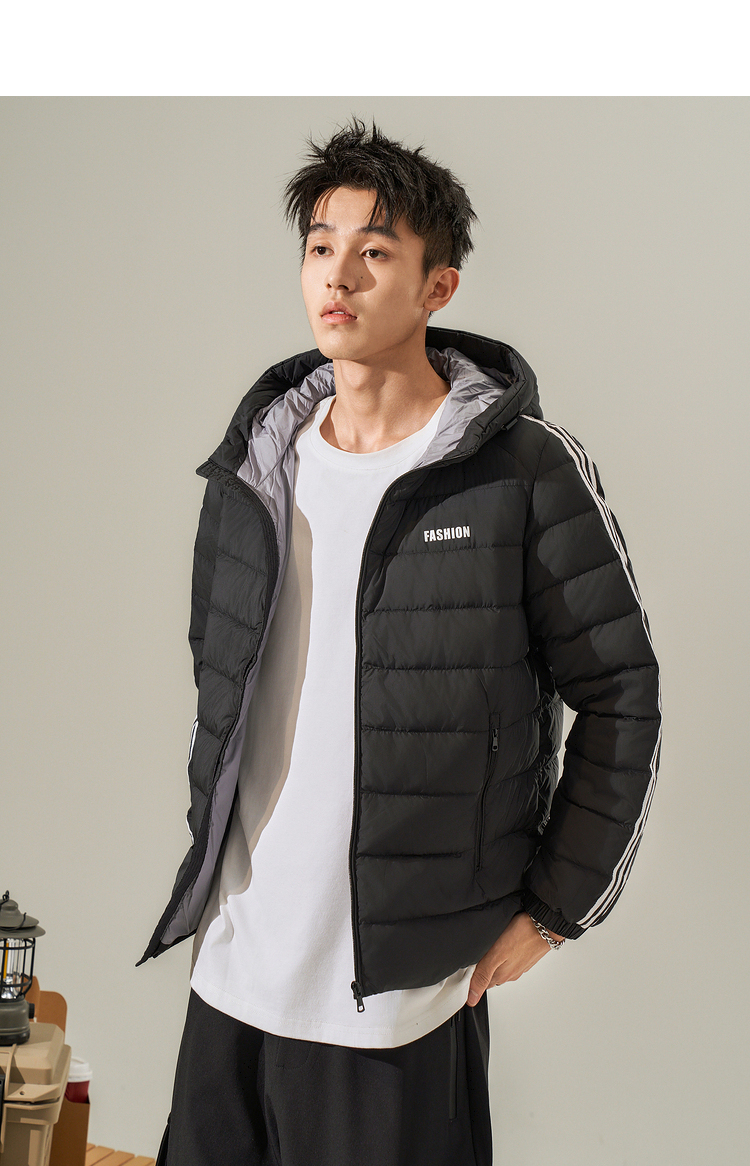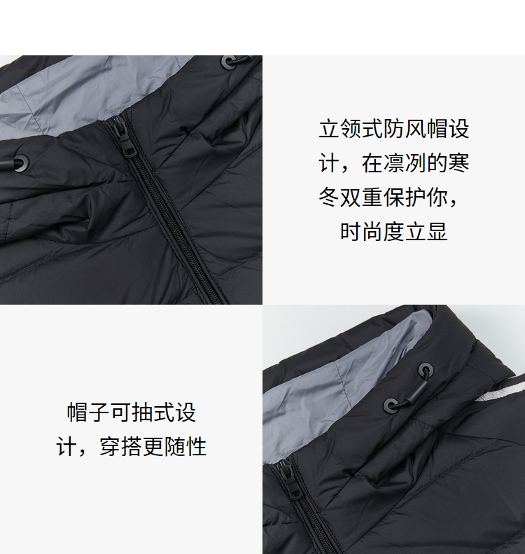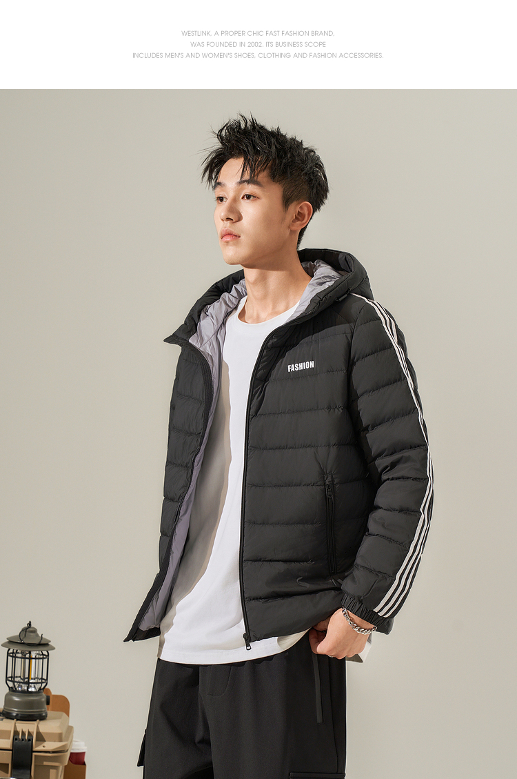 西遇黑色连帽羽绒服男2023秋冬新款时尚情侣薄款保暖立领冬季外套12232171