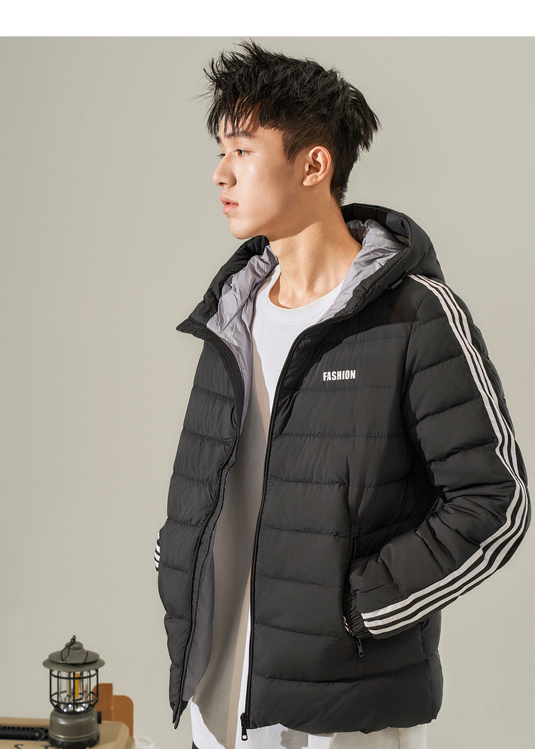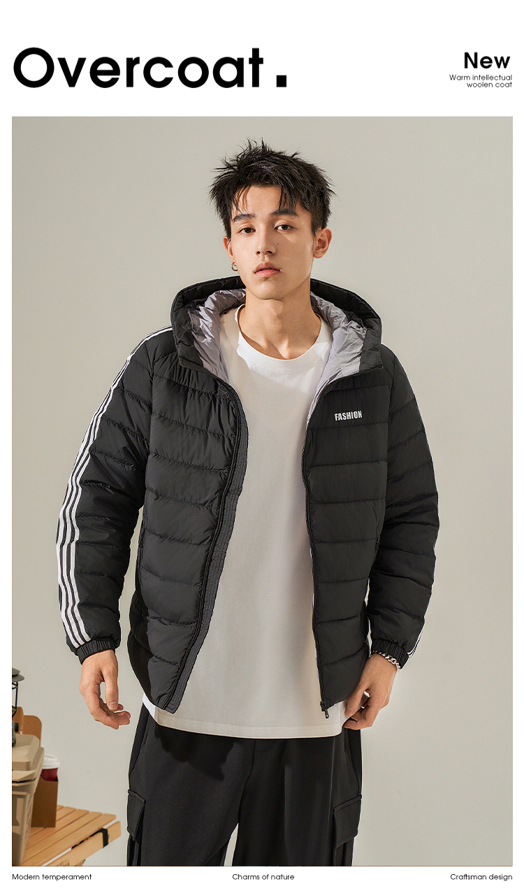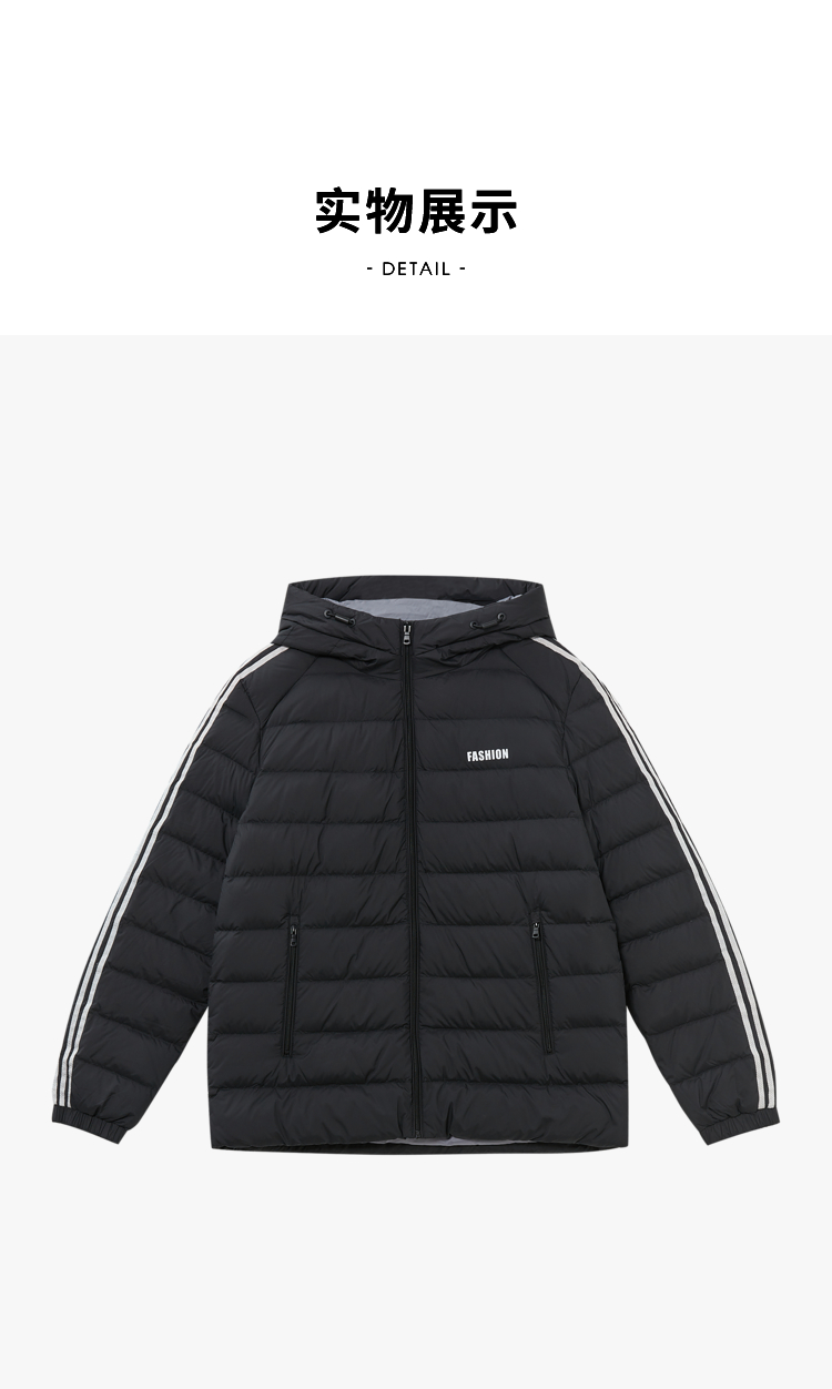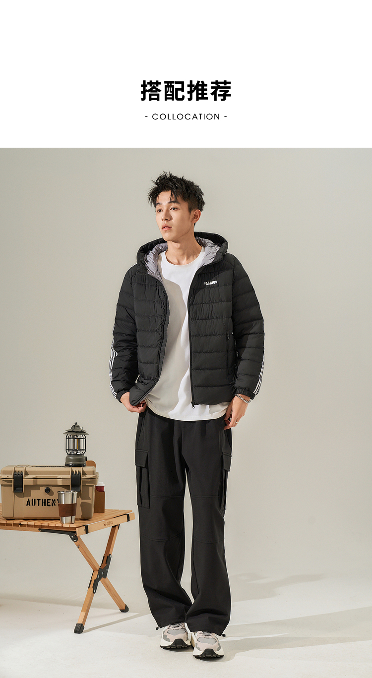 西遇黑色连帽羽绒服男2023秋冬新款时尚情侣薄款保暖立领冬季外套12232171