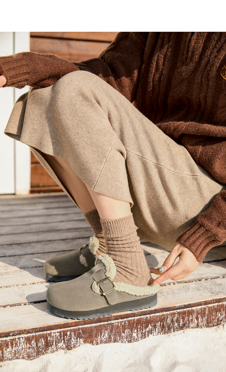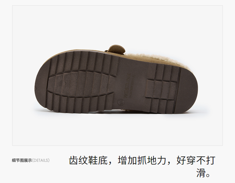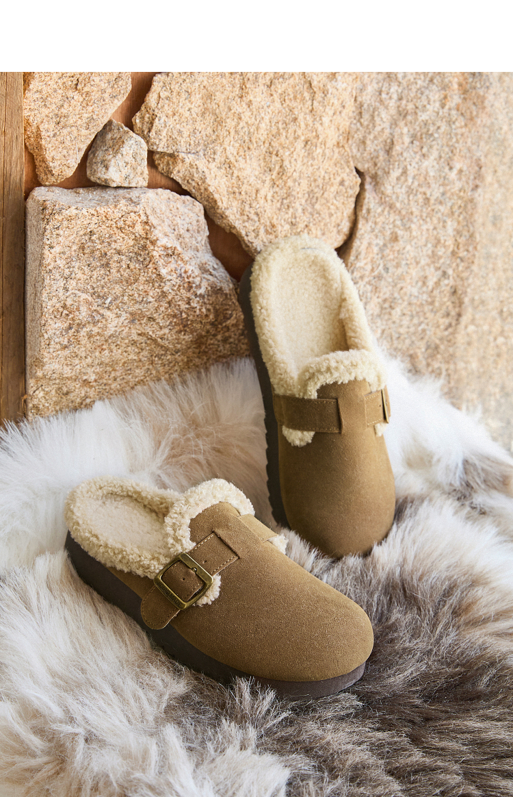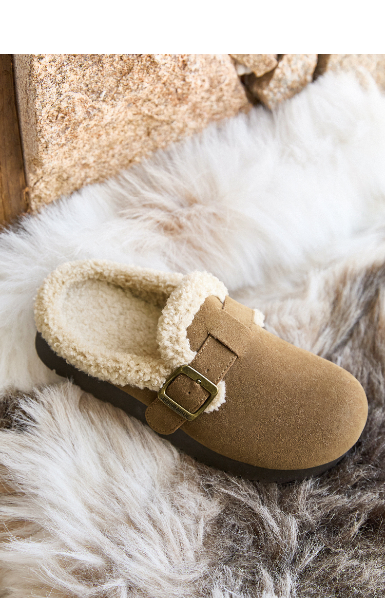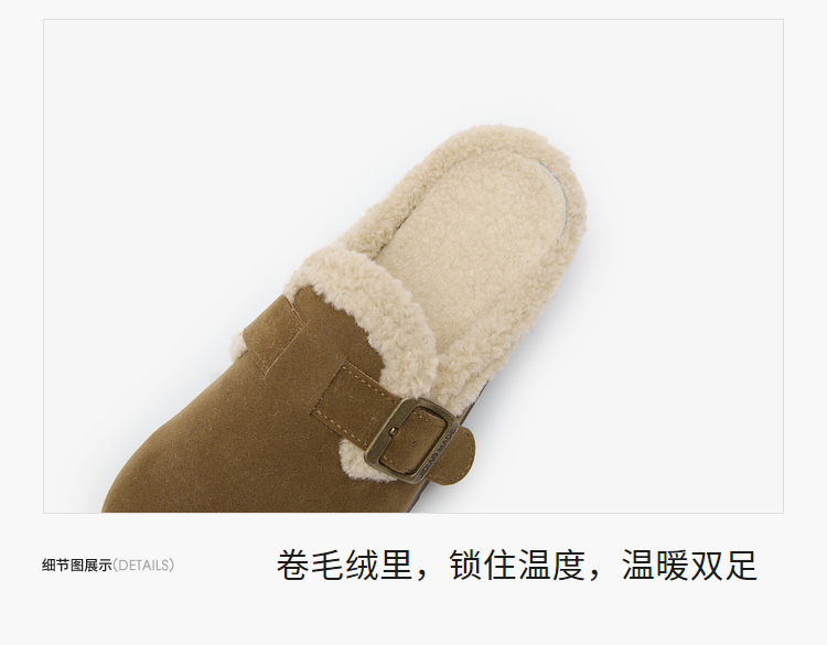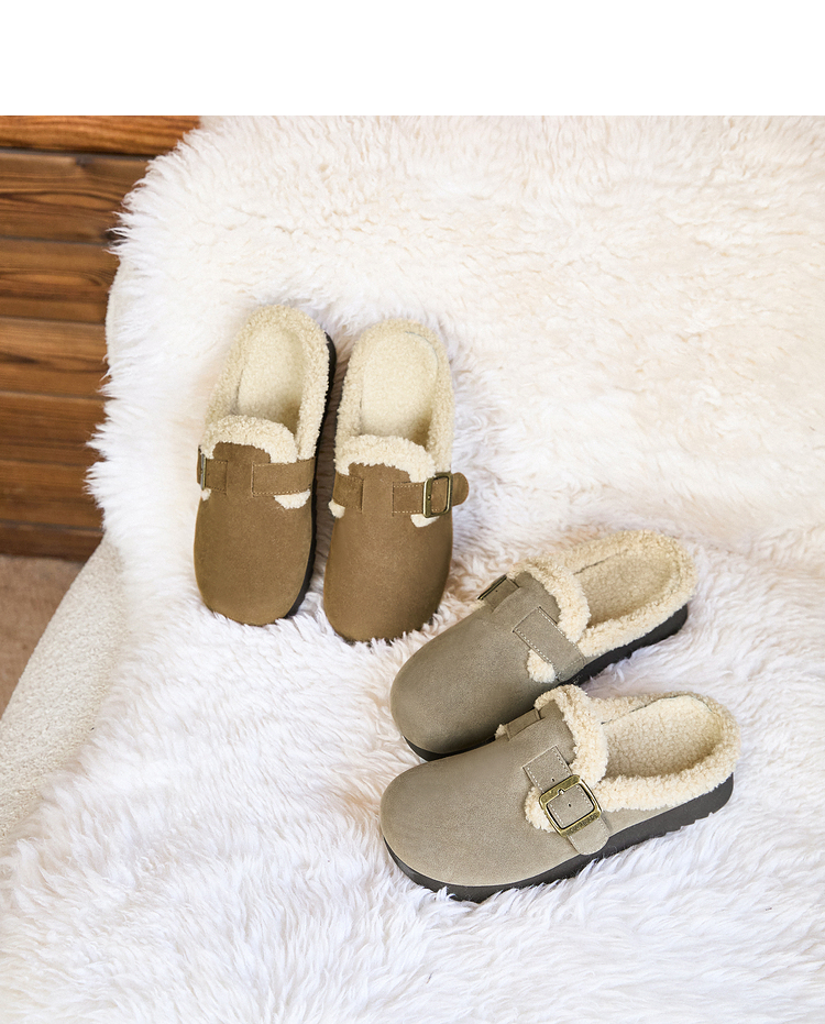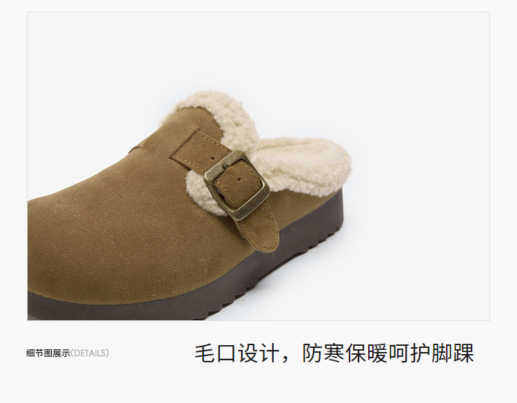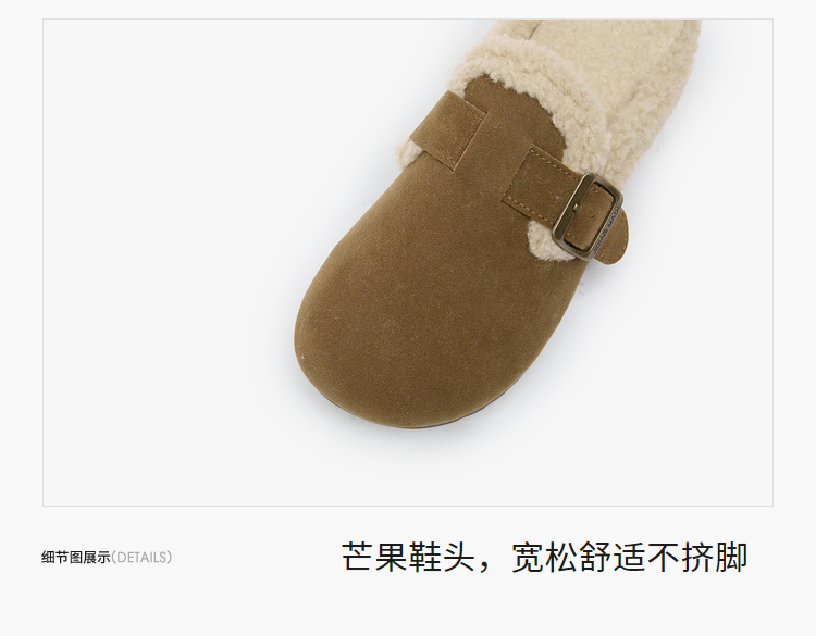 西遇毛绒勃肯鞋女新款冬季外穿包头雪地靴半拖保暖厚底毛毛鞋D4347828