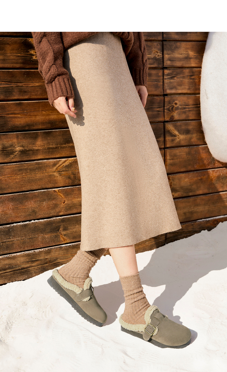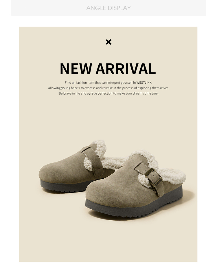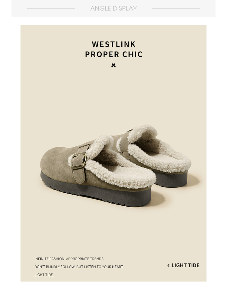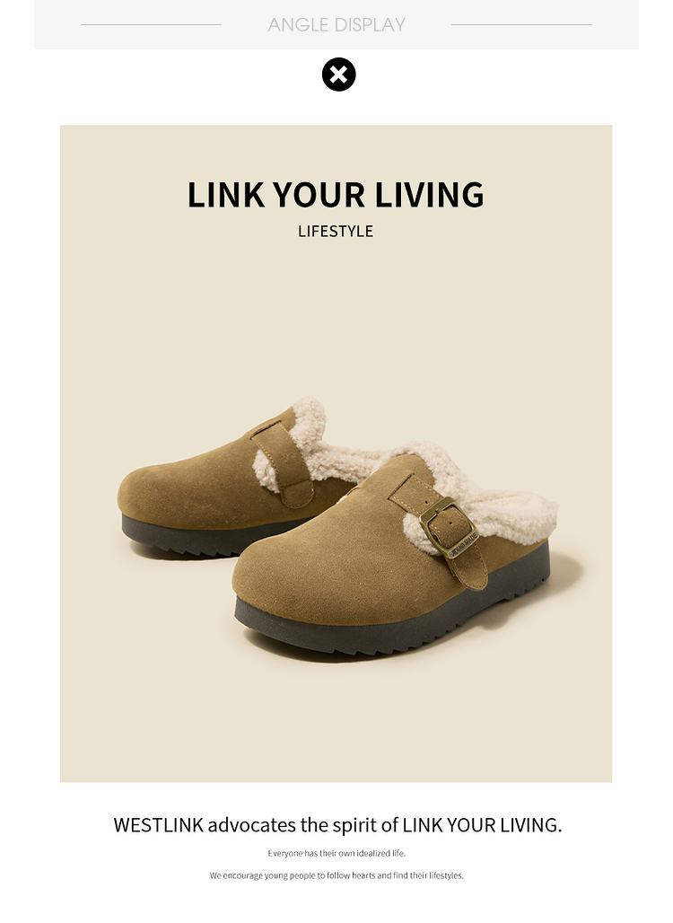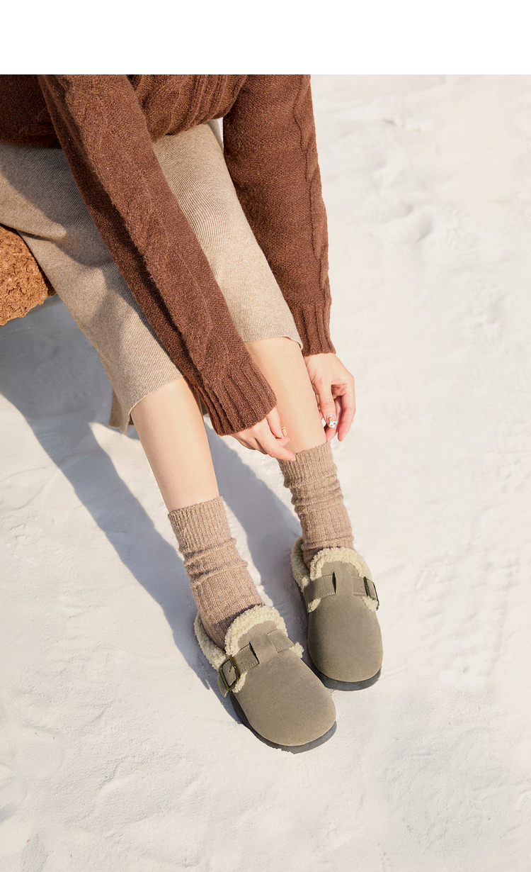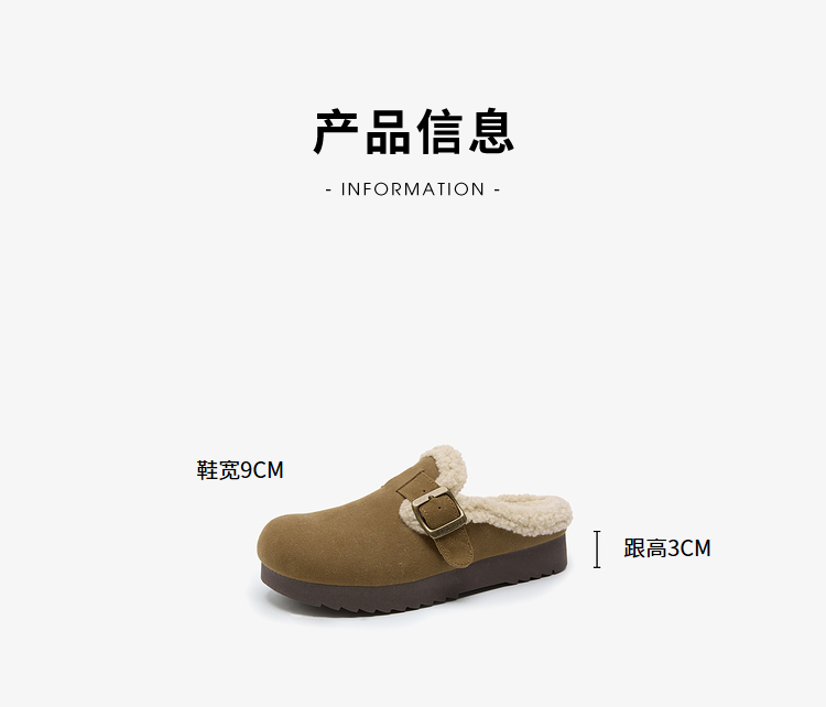 西遇毛绒勃肯鞋女新款冬季外穿包头雪地靴半拖保暖厚底毛毛鞋D4347828