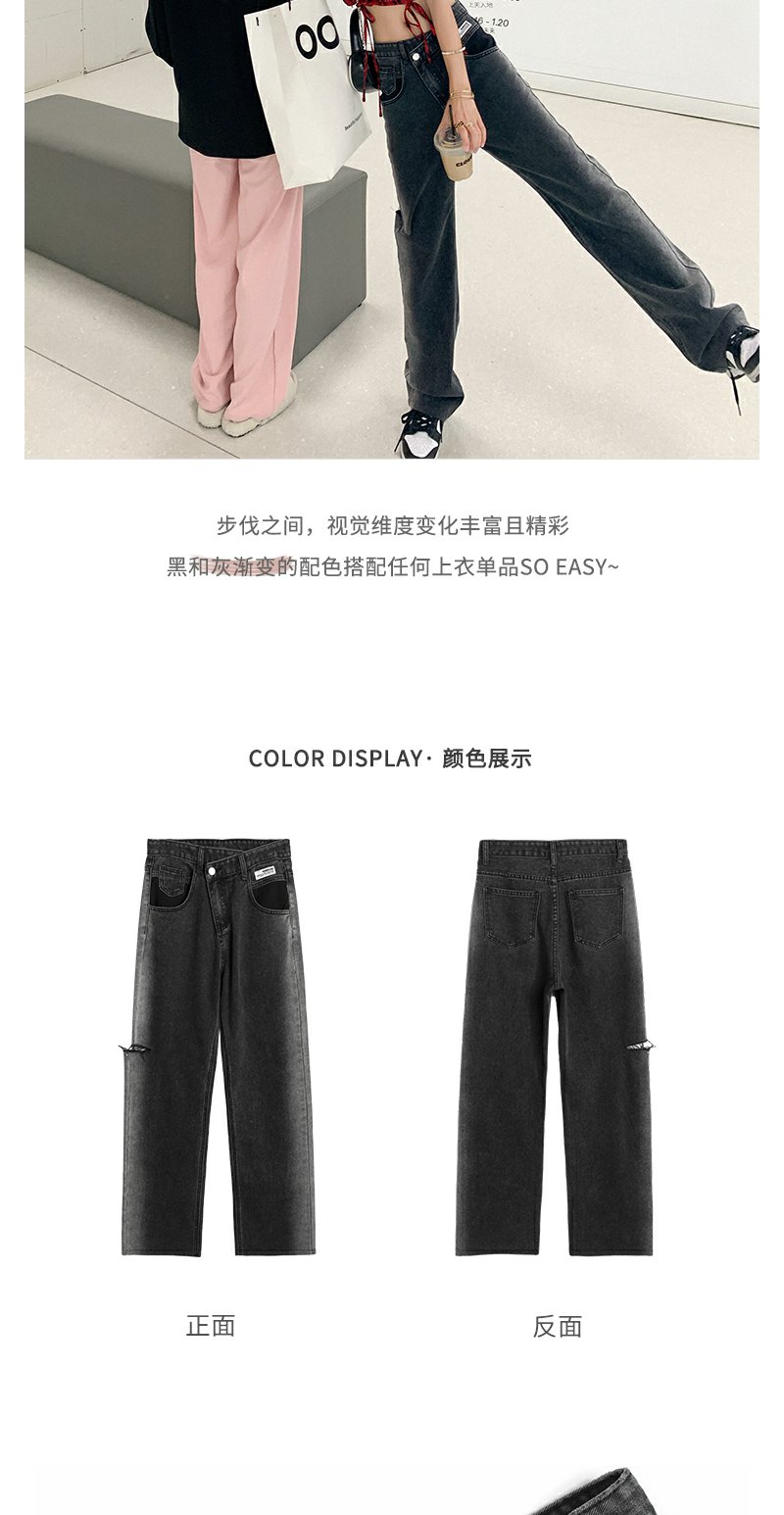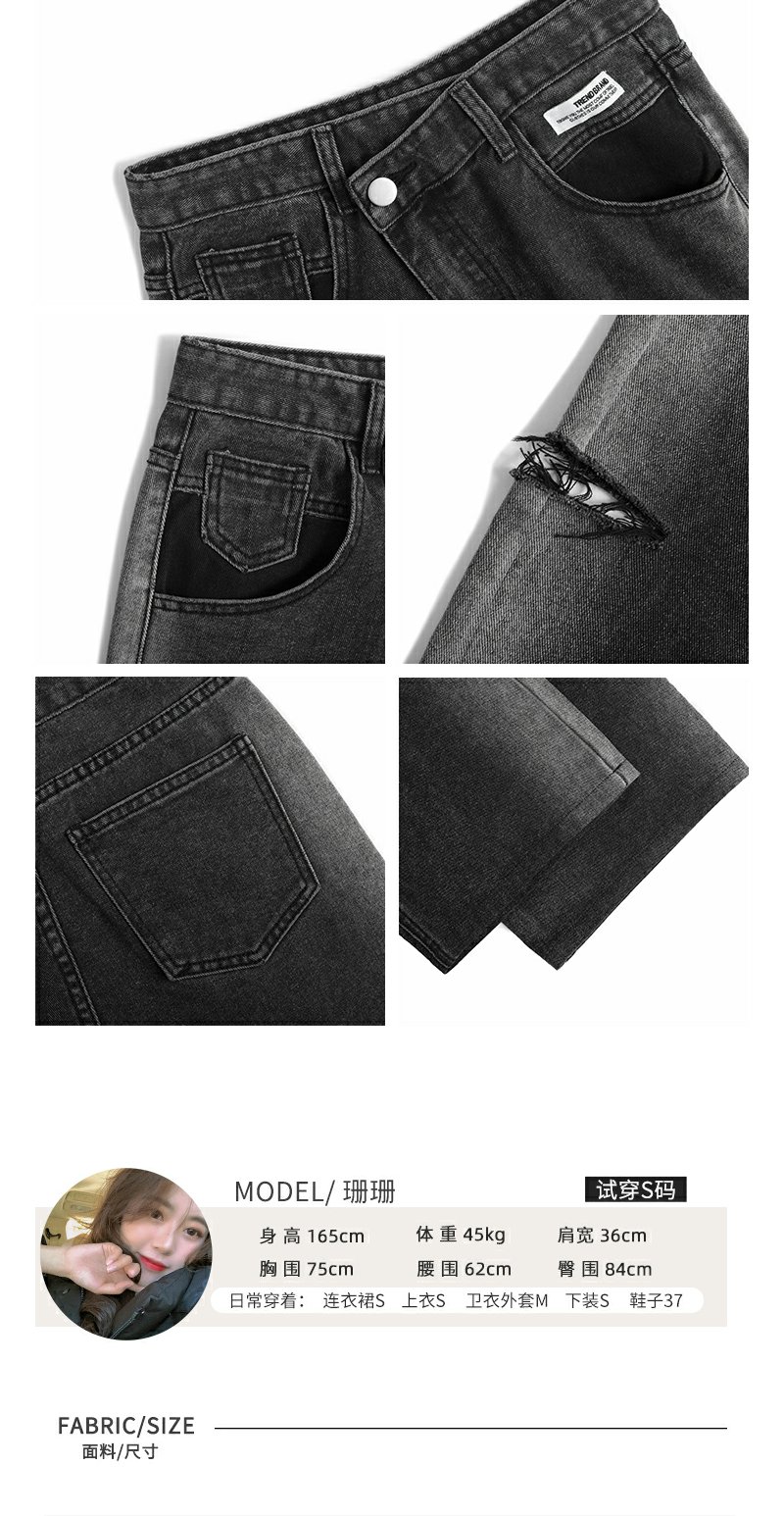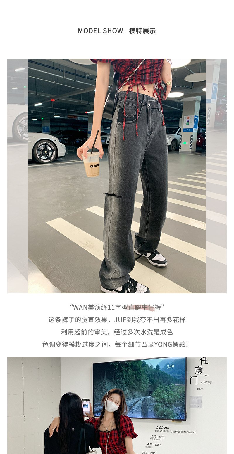 <曾小咸推荐>巨折清仓秒杀,稀有现货24小时发【仅限今日】 曾小咸女装烟灰色破洞牛仔裤女夏季薄款直筒宽松高腰垂感阔腿长裤
