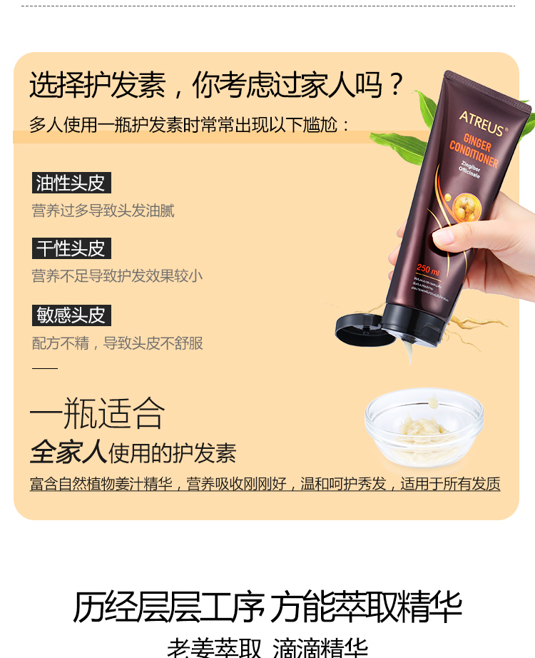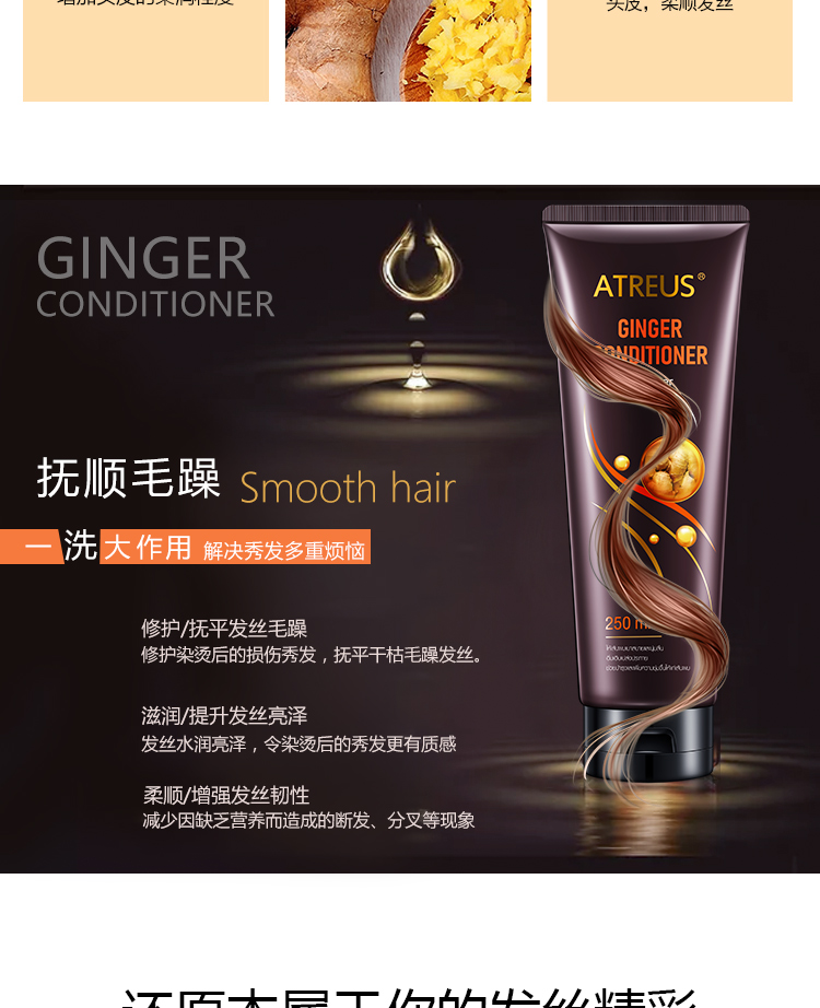 泰国Atreus无硅油生姜护发素250ml/瓶