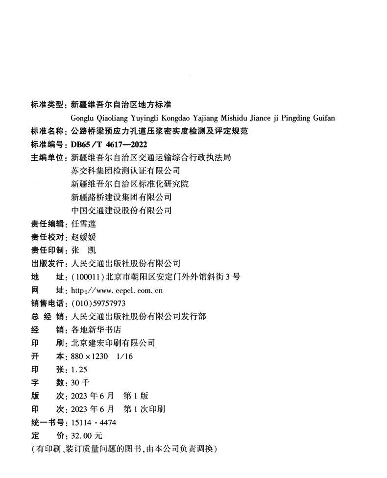 书名:公路桥梁预应力孔道压浆密实度检测及评定规范