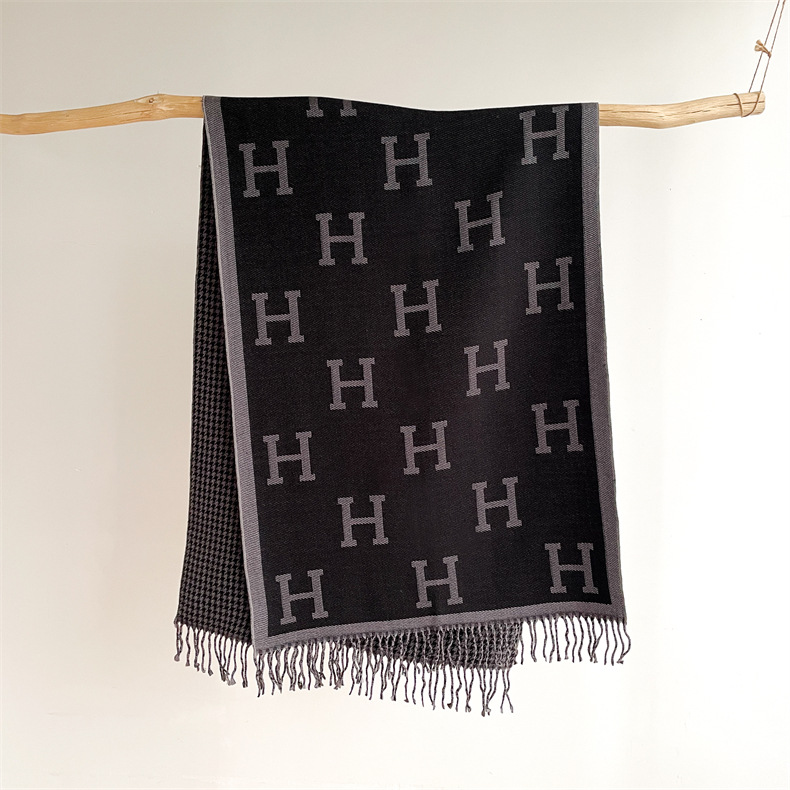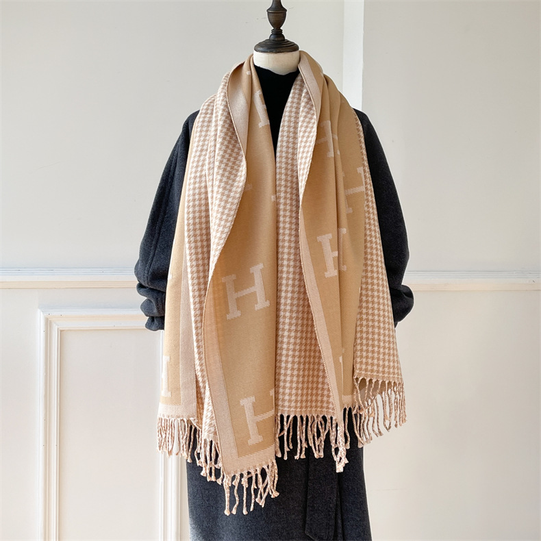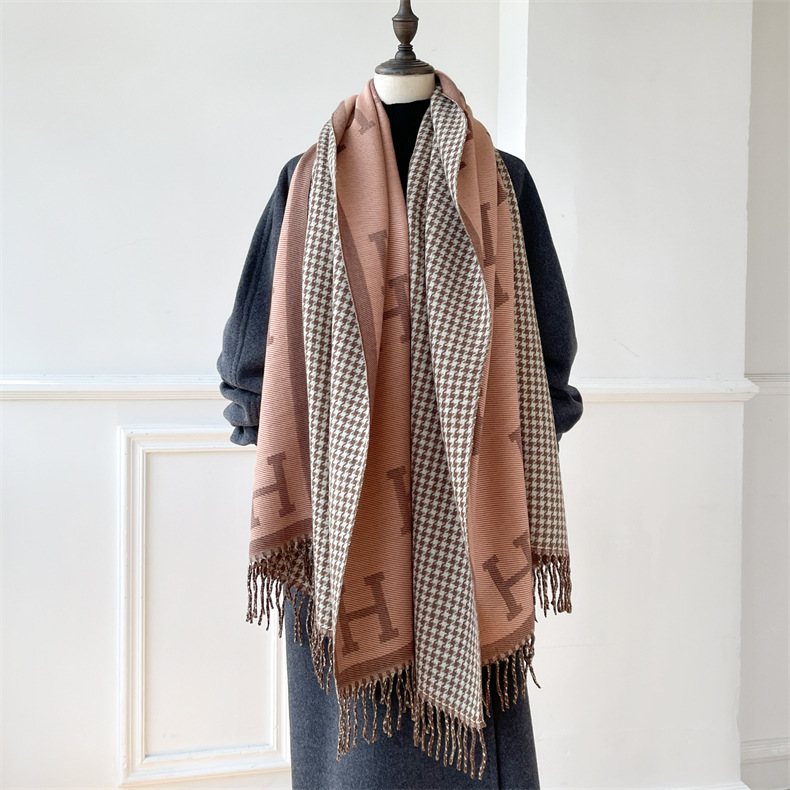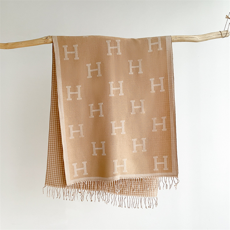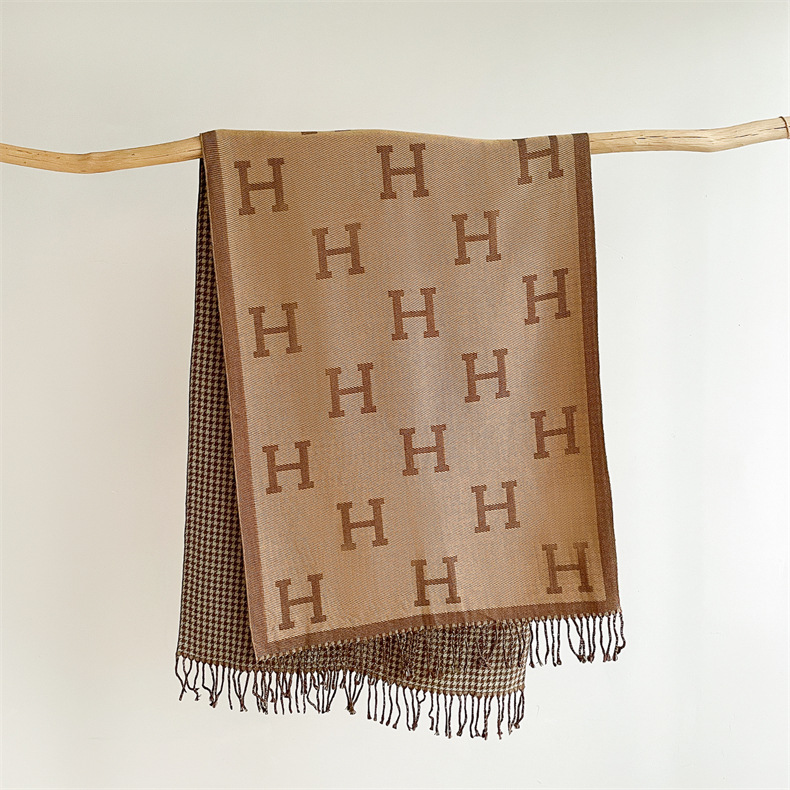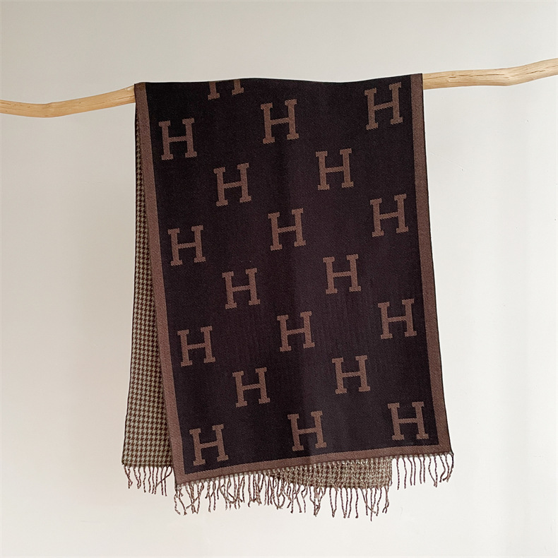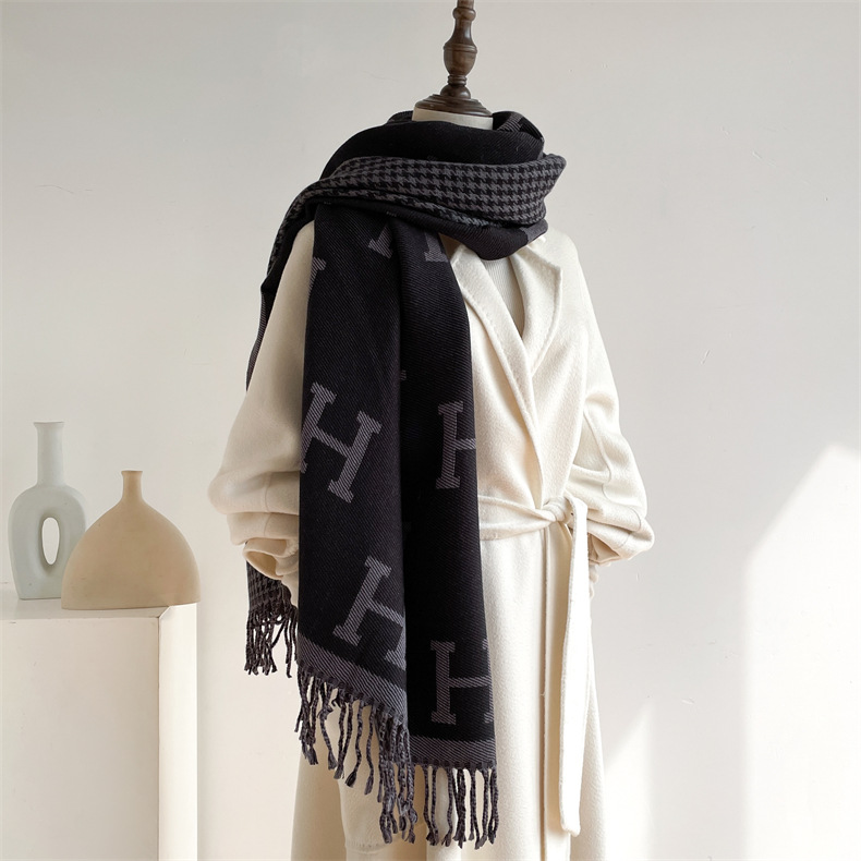 秋冬字母仿羊绒围巾女简约新款百搭加厚流苏披肩时尚保暖围脖